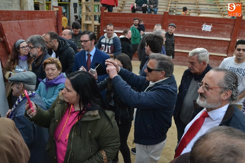 El homenaje de la tarde del jueves consistió en el descubrimiento en el burladero, con la presencia de los concejales Joaquín Pellicer y Cristian González, y de unos cuantos amigos, de una placa en la que figura el nombre de Conrado, que se mostró de nuevo muy agradecido por el cariño que recibe de los mirobrigenses, no sólo con los homenajes de estos días, sino de forma permanente.