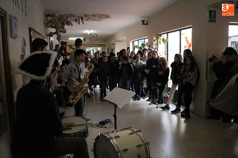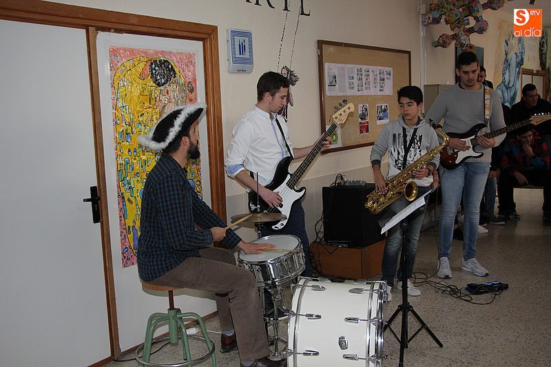 Después de un partido de futbol sala entre dos equipos formados por alumnos, tres de ellos -junto al profesor de música- ofrecían dos temas con percusión, saxo, bajo y guitarra eléctrica, actuación en los pasillos del centro y que daría paso a otras de baile, además de una betucada.