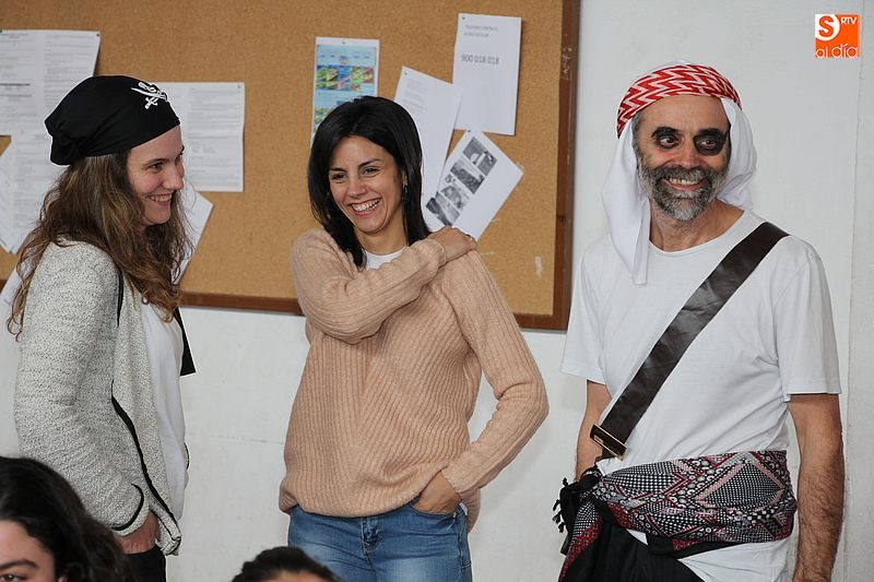 Por otro lado estaban los alumnos, que comenzaban una intensa jornada con varios talleres, confección de caretas, disfraces, ciencia divertida y hasta se proyectó una película en la biblioteca. Entre las novedades estuvo el programa de radio con la colaboración de los chicos de Arribes FM, un taller de impresión en 3D y un intensivo Master Class de Zumba dirigido por la incansable Casta Caparrós.