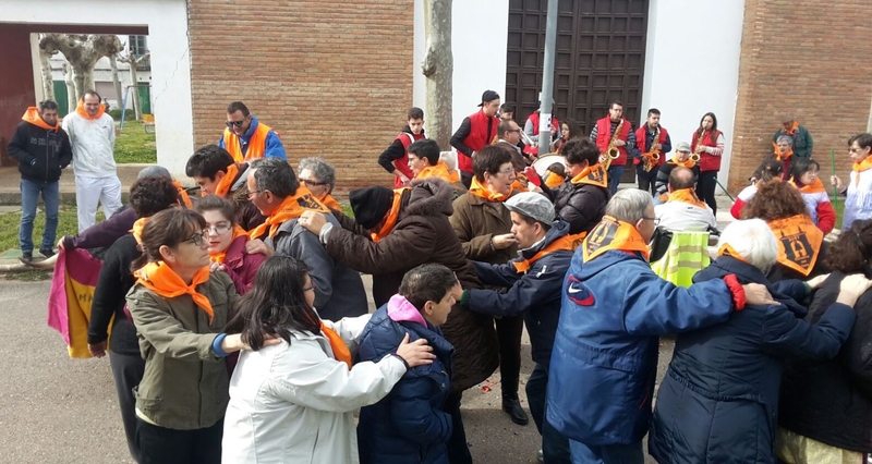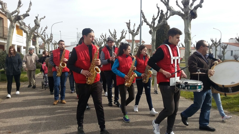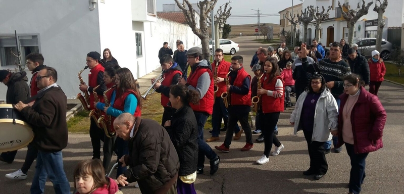 El acto del Campanazo contó con la animación de la Charanga Infantil Los Bemoles, que realizó con los usuarios de Asprodes un pasacalles por Sanjuanejo. Todos los usuarios lucieron anudado al cuello el pañuelo farinato del Campanazo.