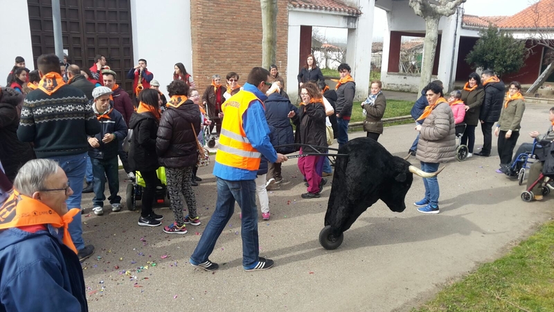 En la mañana del viernes, hubo en primer lugar una fiesta de disfraces, que dio paso posteriormente a una versión propia del Campanazo de la mano de integrantes de la Asociación Cultural Carnavaldeltoro.es, quienes llevaron unos carretones hasta Sanjuanejo para que los usuarios de Asprodes echasen unas carreras.