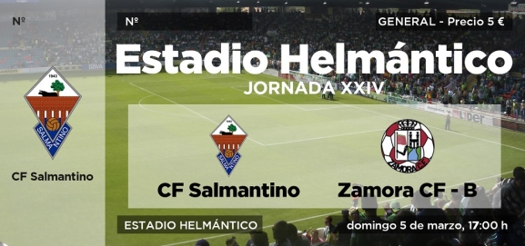 El encuentro correspondiente a la jornada 24 de Liga que enfrentará al CF Salmantino con el Zamora B en el estadio Helmántico se celebrará finalmente el domingo 5 de marzo a partir de las 17 horas y no a las 16.30 como habitualmente estaba previsto. Las entradas se pueden adquirir ya en el enlace: