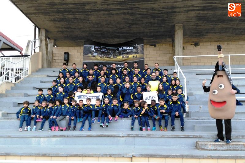 Con motivo del cercano cierre de temporada de la pista cubierta, el Club VelSalamana no quiso dejar pasar la oportunidad de mostrar lo que es en la actualidad su cantera de atletismo y con la empresa Aljomar, como principal patrocinadora, posó en las gradas ante los familiares y amigos de los deportistas, que van desde la edad prebenjamín hasta la sénior.
