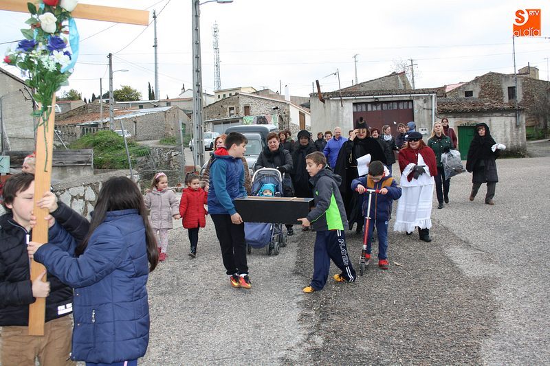 Mujeres vestidas de luto y niños portando la cruz, y el ataúd donde reposaba una nueva inquilina tras atravesar el Antruejo, protagonizaron este miércoles en Villarino el tradicional entierro de la sardina, acto que pone fin a las celebraciones del Carnaval en esta localidad ribereña del Parque Natural Arribes.