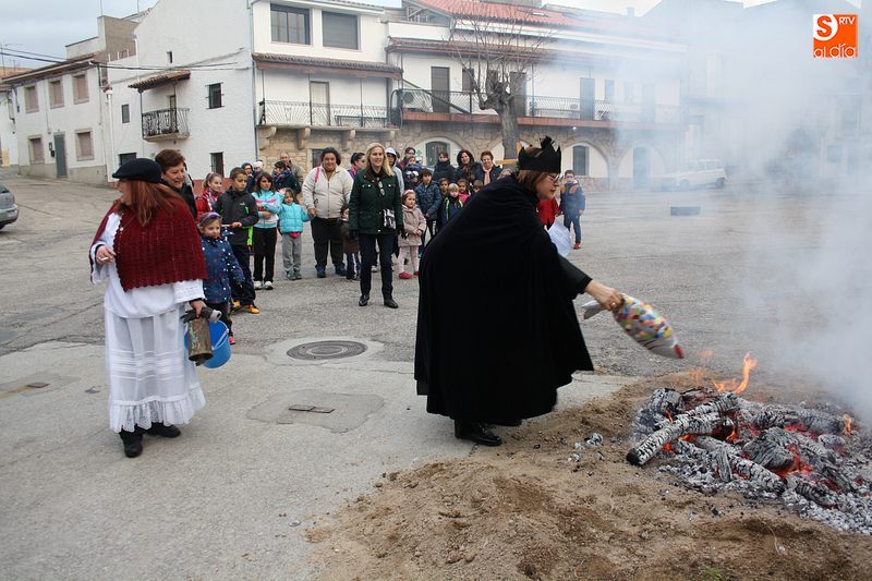 Así y en medio de las correrías de los más pequeños y los sollozos de las más emocionadas por la marcha de la sardina, la 'procesión' llegaba a la plaza, lugar donde el 'sacerdote' oficiaba la bendición de los presentes, hasta que la protagonista de la jornada fue arrojada finalmente a las llamas como símbolo de su paso al más allá.