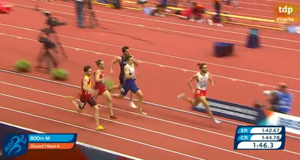Álvaro de Arriba se mete en las semis del Europeo adelantando a 3 atletas en los últimos metros   | Imagen 1De salida, Álvaro de Arriba se colocó en 3ª posición, con el gran favorito, el polaco Adam Kszczot, en 5º lugar. Esas posiciones se mantuvieron durante muchos metros, hasta que, cuando quedaba poco más de una vuelta, el polaco adelantó a Álvaro de Arriba, así como el danés Andreas Bube.