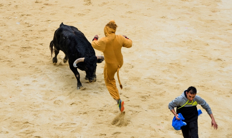 En esta galería se pueden ver imágenes del ambiente previo al encierro a caballo (con Chicho Pellicer caracterizado como Donald Trump), del propio encierro, de la capea en la plaza, o de unas cuantas personas que estaban disfrazadas.