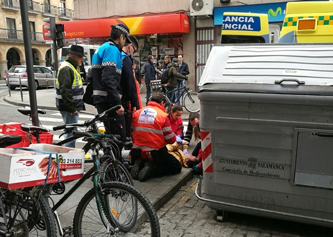 Una mujer, golpeada en la cabeza por un autobús en la calle Correhuela