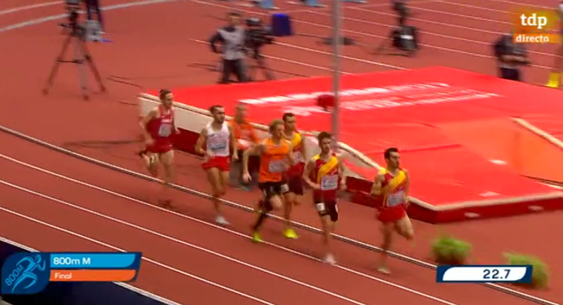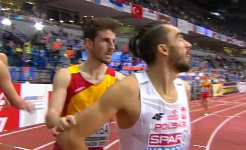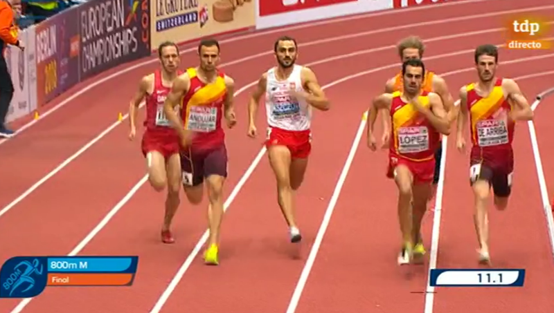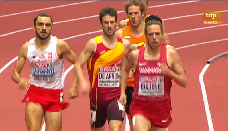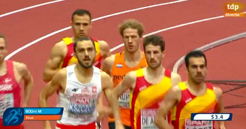 Álvaro de Arriba hace historia colgándose el bronce en su primer Europeo Absoluto Indoor   | Imagen 1El polaco acabó por dar su ataque definitivo al paso por el 500, momento en que el holandés Kupers quiso ir hacia arriba, teniendo un encontronazo de codos más serio con Álvaro de Arriba, que quedó ciertamente encerrado junto a los otros dos españoles, Kevin López y Daniel Andújar, por detrás de los otros 3 corredores de la final.