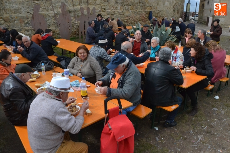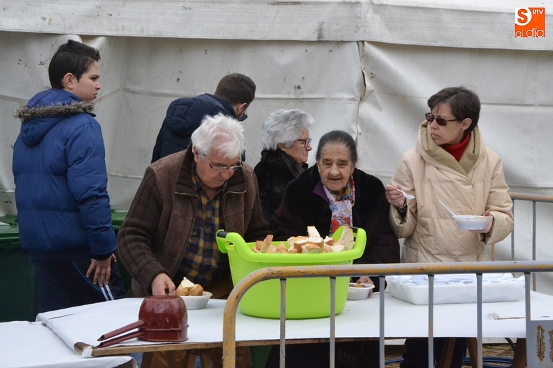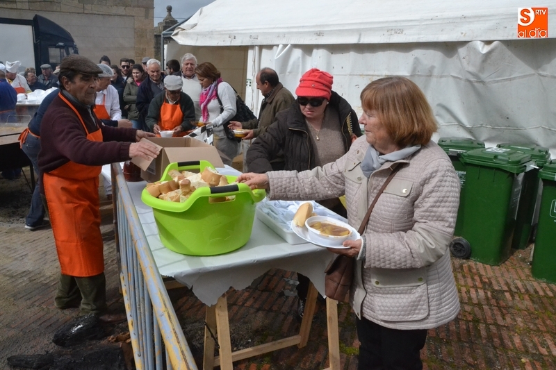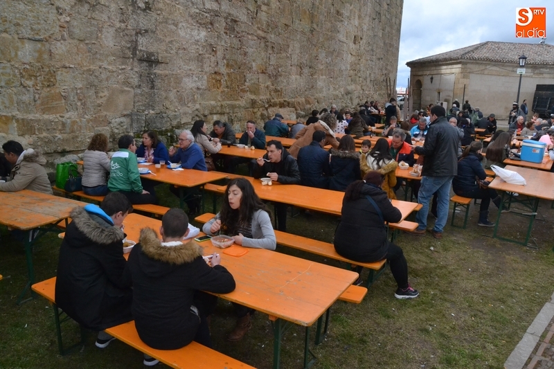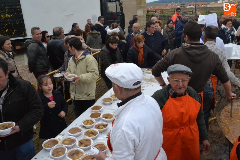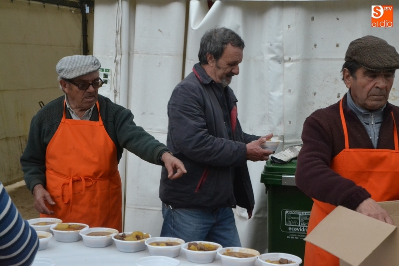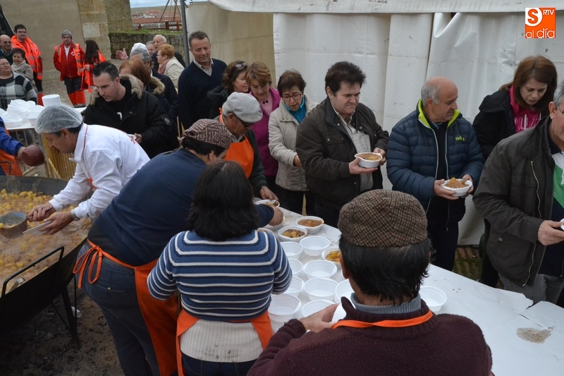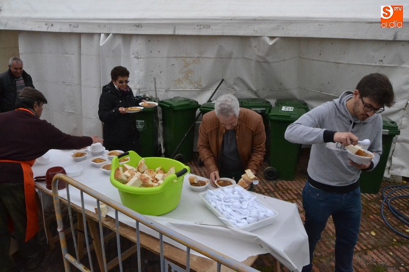 CIUDAD RODRIGO | Varios cientos de personas se acercaron a la hora de comer a recoger su cuenco de carne de toro con patatas