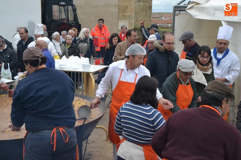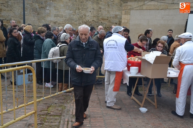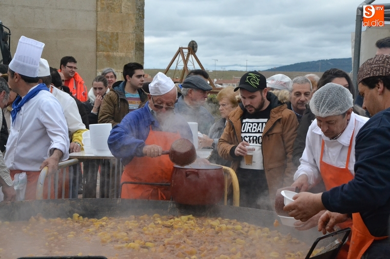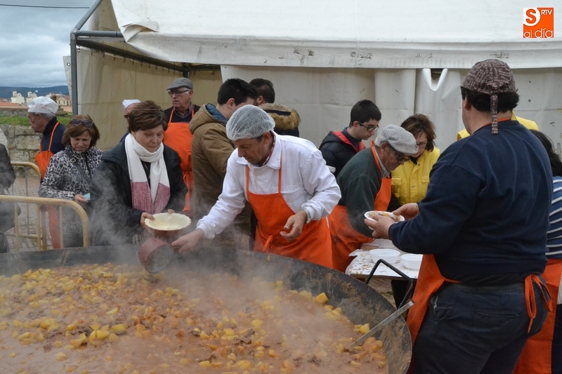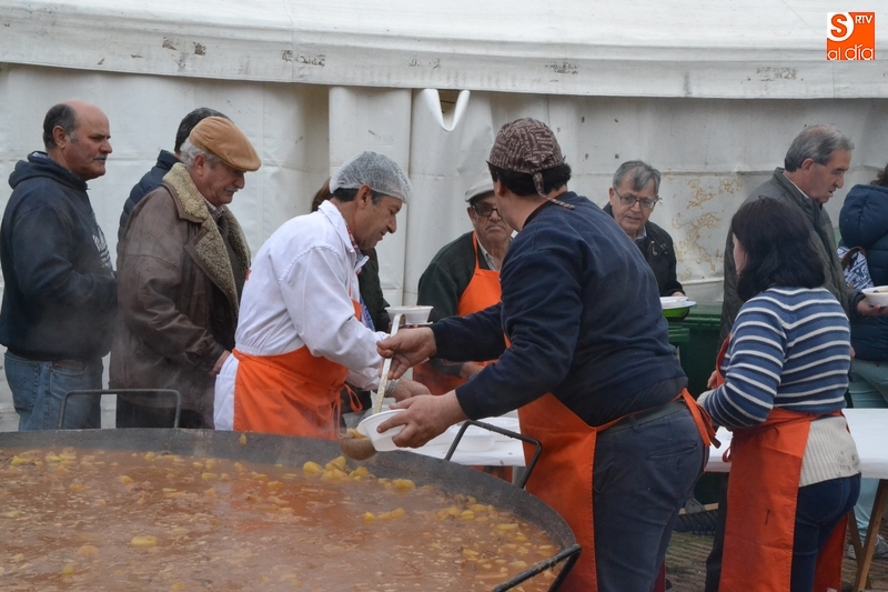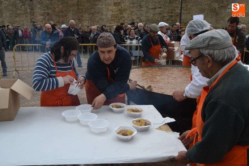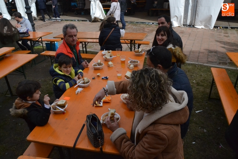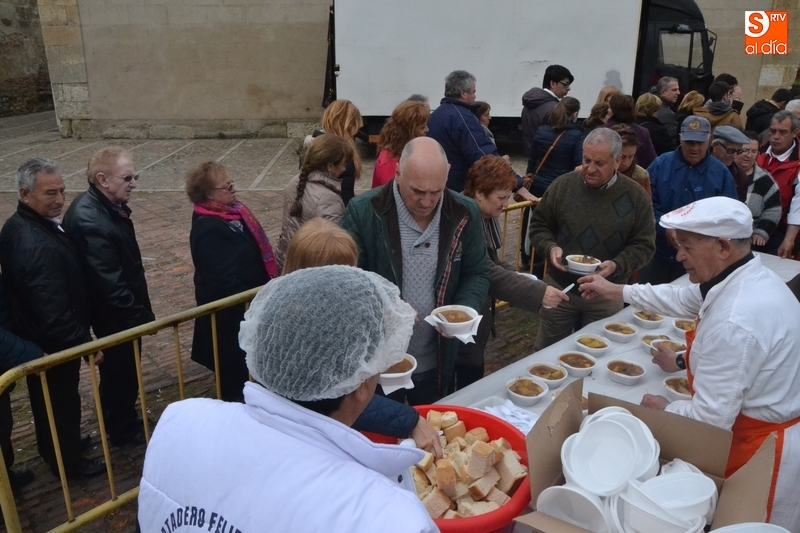 CIUDAD RODRIGO | Varios cientos de personas se acercaron a la hora de comer a recoger su cuenco de carne de toro con patatas
