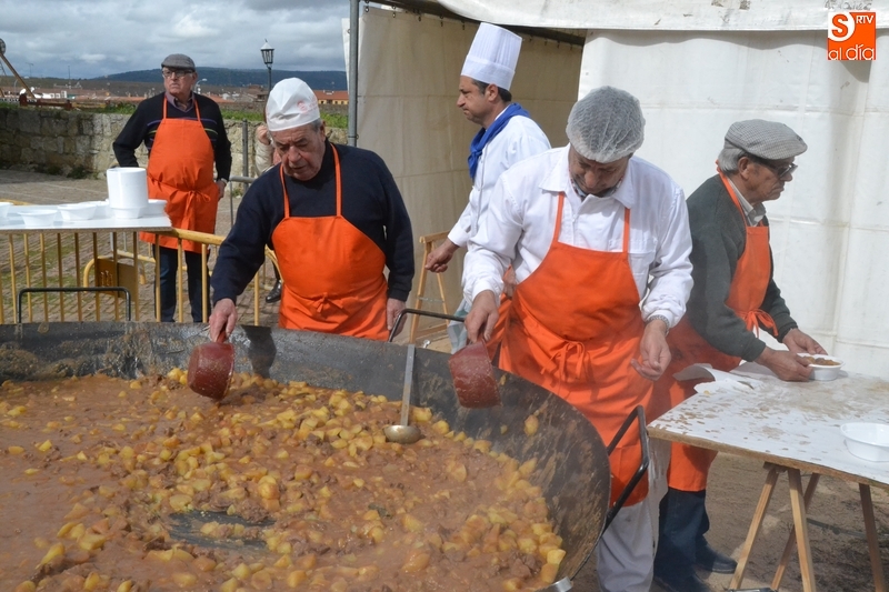 Según expresaba el cocinero jefe, José Luis Benito, se ha preparado una cantidad de comida similar a la de años anteriores, con 600 kilos de patatas y unos 450 kilos de carne procedentes de dos de los novillos del Bolsín Taurino del pasado Domingo de Carnaval.