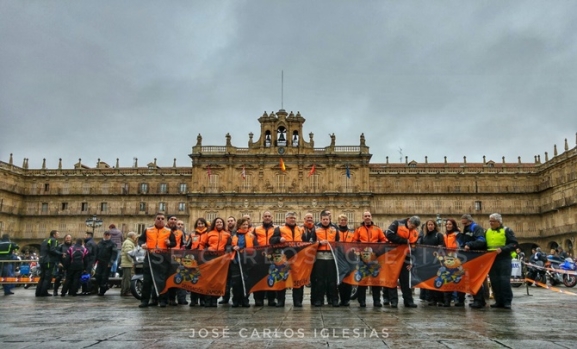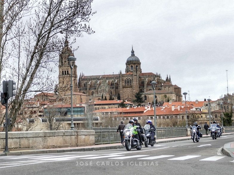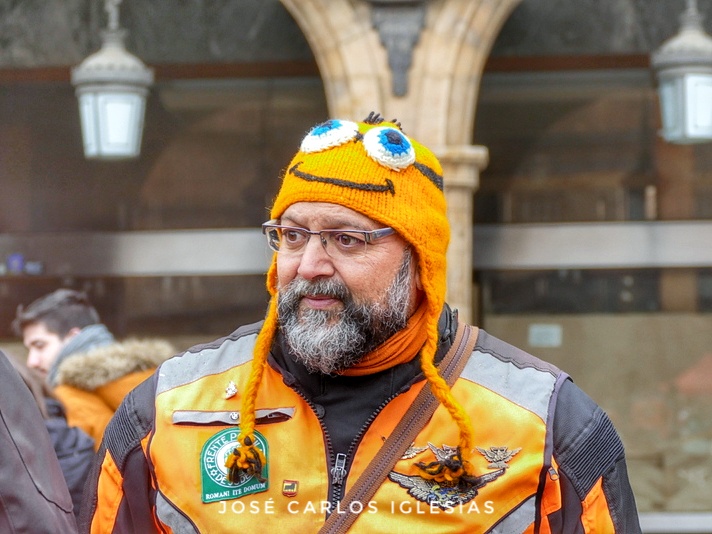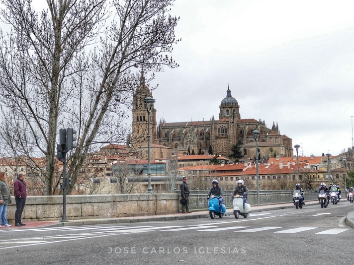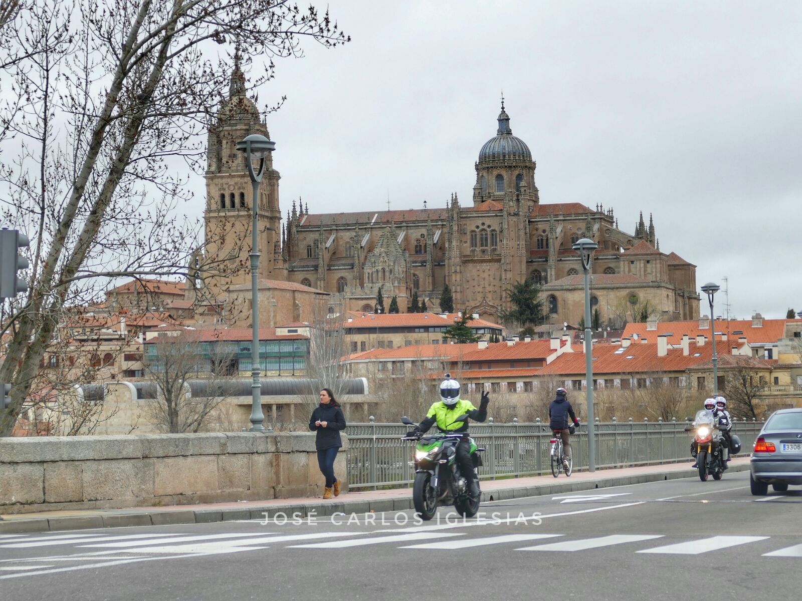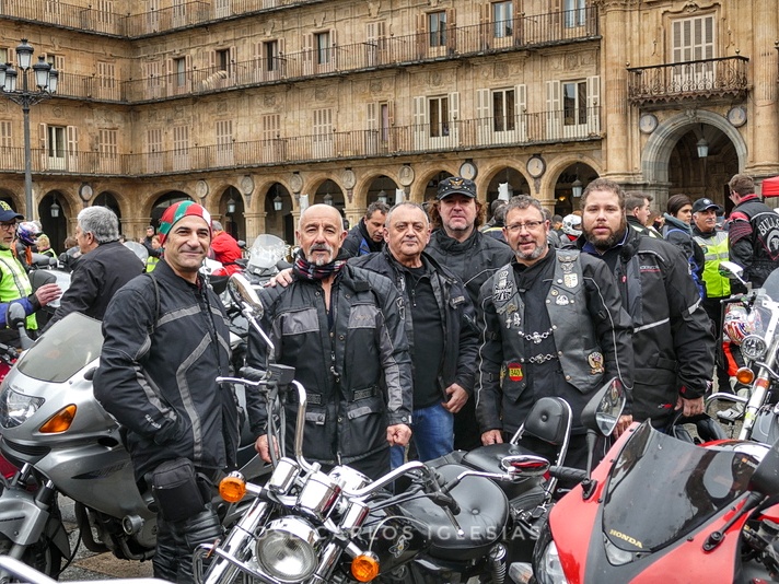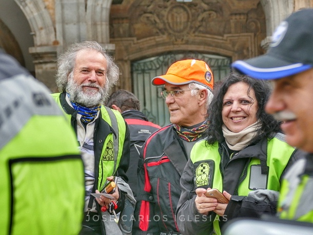 El inconfundible rugir de las dos ruedas por las calles de Salamanca, y al volante de las motos que han despertado la curiosidad de los viandantes, los moteros del Motoclub de La Virgen del Camino, llegados de diferentes provincias de Castilla y León. Con parada ineludible en la Plaza Mayor, han proseguido su ruta por la calle San Pablo en dirección al puente de hierro en este primer domingo de marzo que ha amanecido con el cielo encapotado. La iniciativa ha estado organizada por el Club Ruedas Charras.
