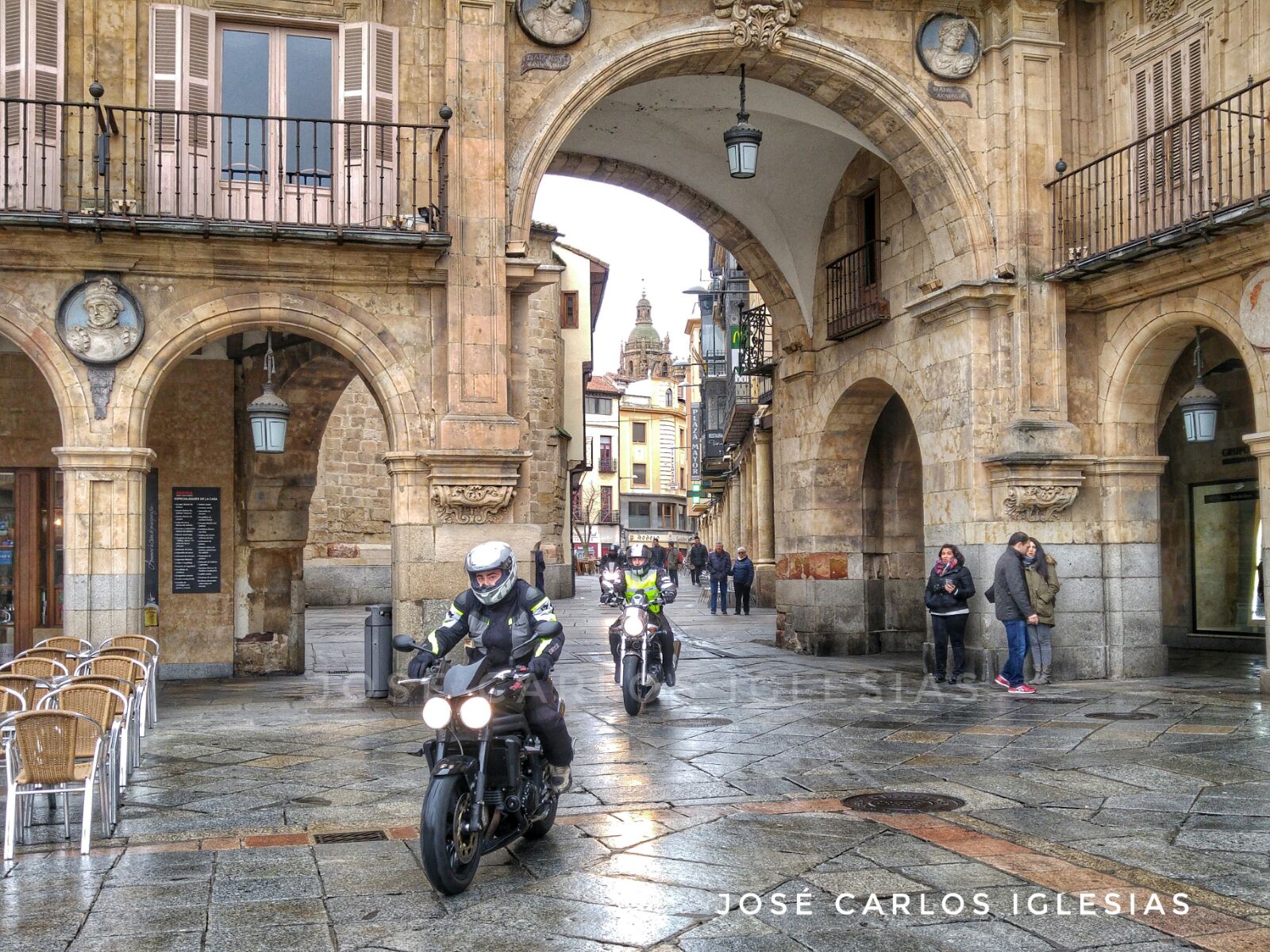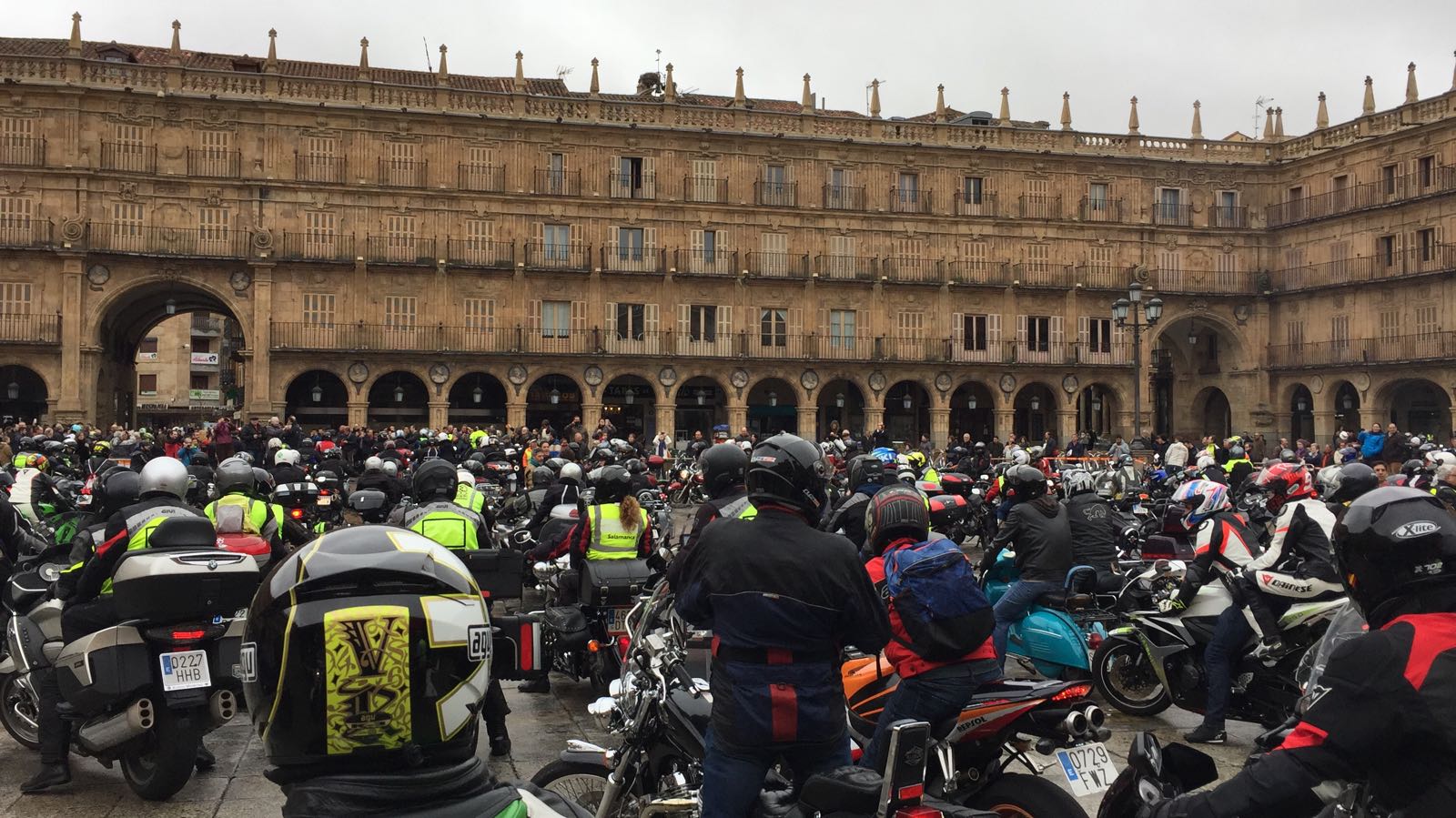 El inconfundible rugir de las dos ruedas llena la Plaza Mayor de Salamanca