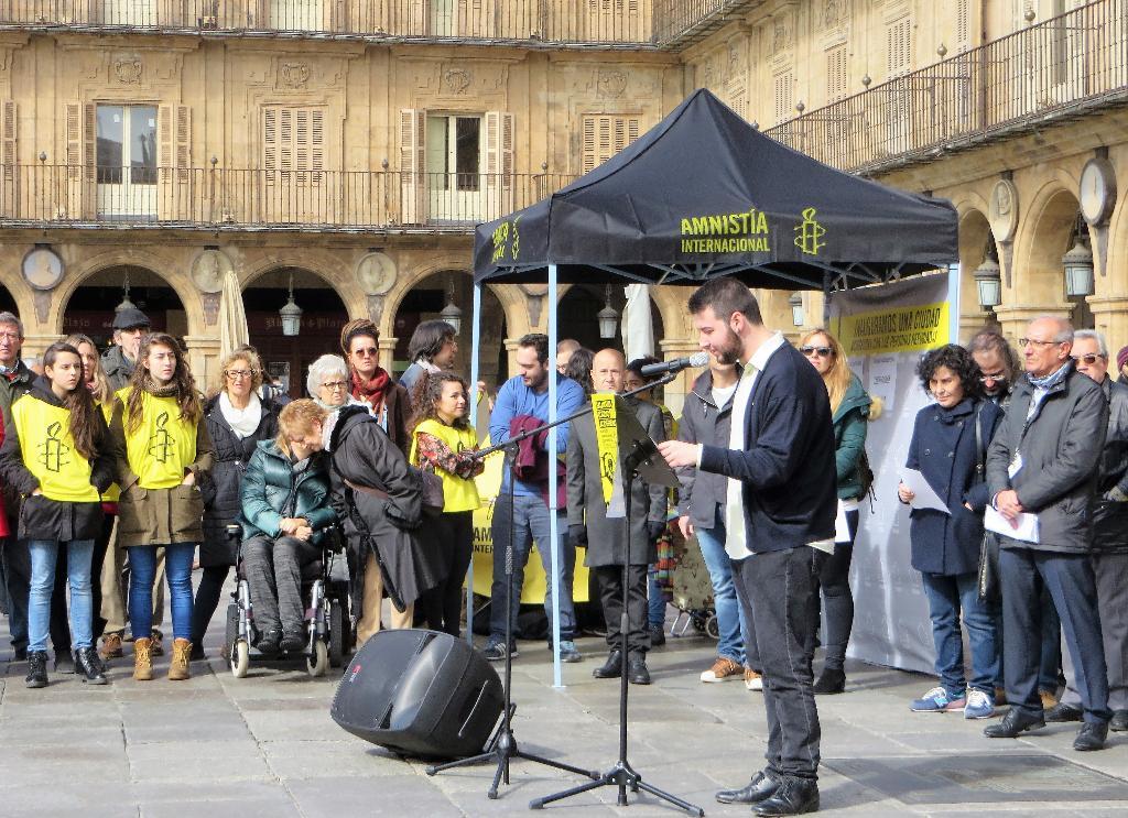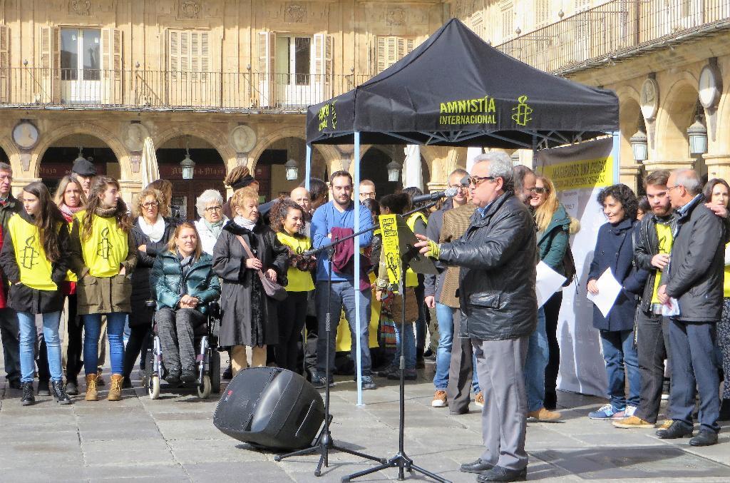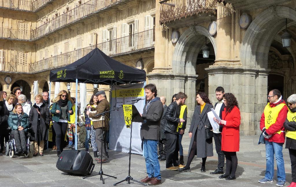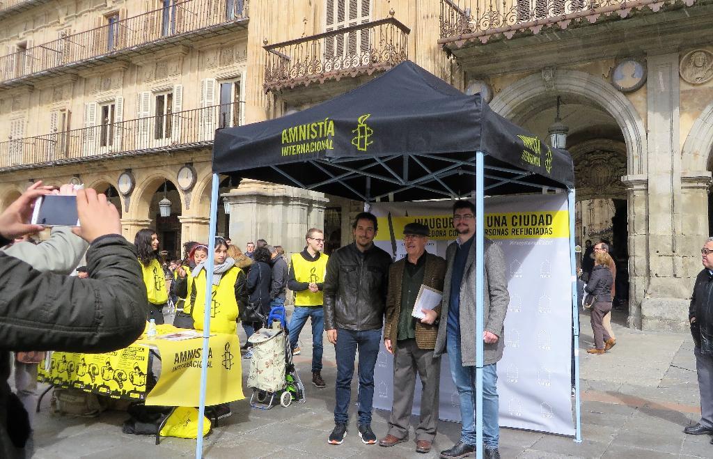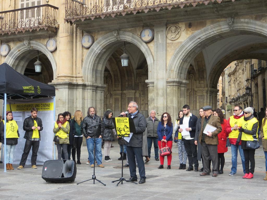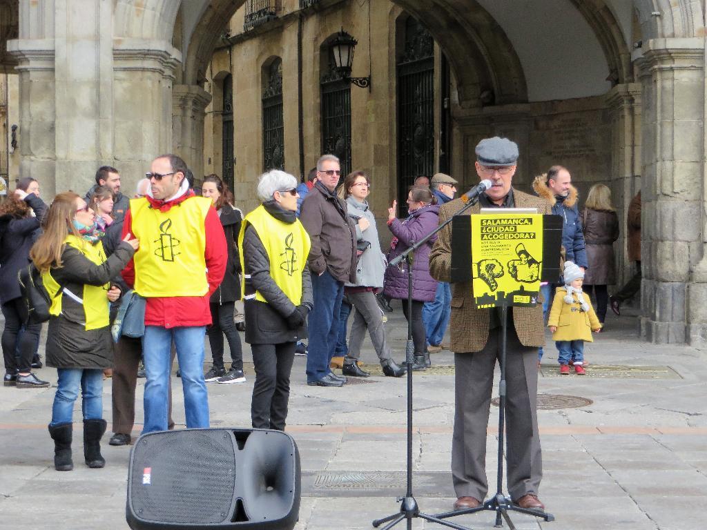El coordinador del Grupo Local de Amnistía Internacional en Salamanca, Guillermo Castán Lanaspa, señaló, "que Salamanca pueda ser considerada como 'ciudad acogedora', y a tal fin hemos invitado al equipo de gobierno del Ayuntamiento a que haga público su compromiso concreto, expresando el número de plazas que ofrece al gobierno. Dada la situación (hasta la fecha tan solo se han acogido 1.141 personas del cupo asignado, y el número de plazas disponible es de 2.500, según señala la Defensora del Pueblo), un acto cívico como el que planteamos podría ser una buena forma de que también nuestra ciudad contribuya de manera acorde a sus recursos".