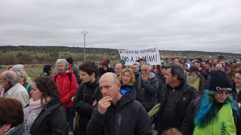 Varios cientos de personas han secundado este domingo en la localidad de Retortillo la protesta convocada por el Colectivo Salamanca Antinuclear y la Plataforma Stop Uranio contra el masivo arranque de encinas que está llevando a cabo la empresa minera Berkeley al objeto de construir en este lugar una mina de uranio a cielo abierto.