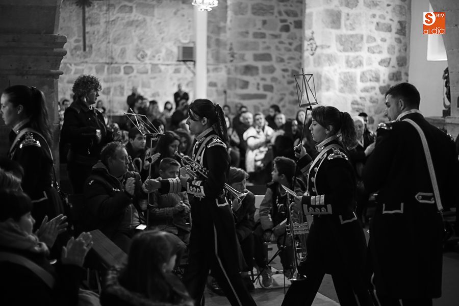 Una plegaria, una oración, un recuerdo escrito en un pentagrama. Hoy ha comenzado a sonar la Cuaresma en Carbajosa, y los músicos de La Estrella han vuelto a deleitar a los asistentes con su particular forma de rezar: con un instrumento en la mano. Día de reencuentros, de estrenos, con la emoción como gran y maravilloso colofón al sonar la marcha "Mirando al cielo", recordando a aquellos que ahora nos miran desde "el balcón más especial". Una emotiva demostración de que la música no es sólo cuestión de pulmones, tiene que salir del corazón.