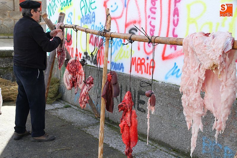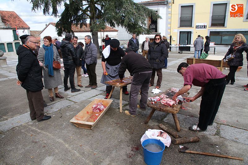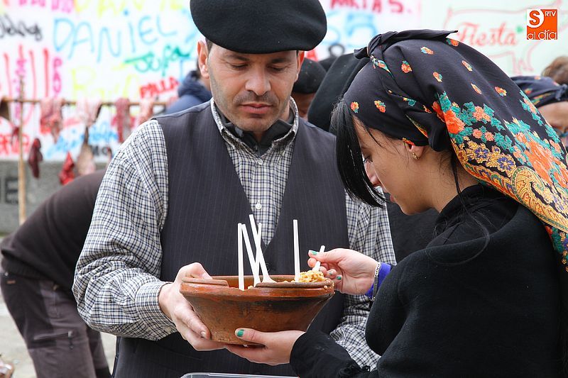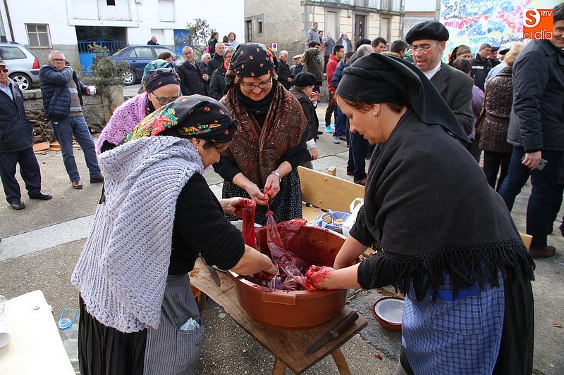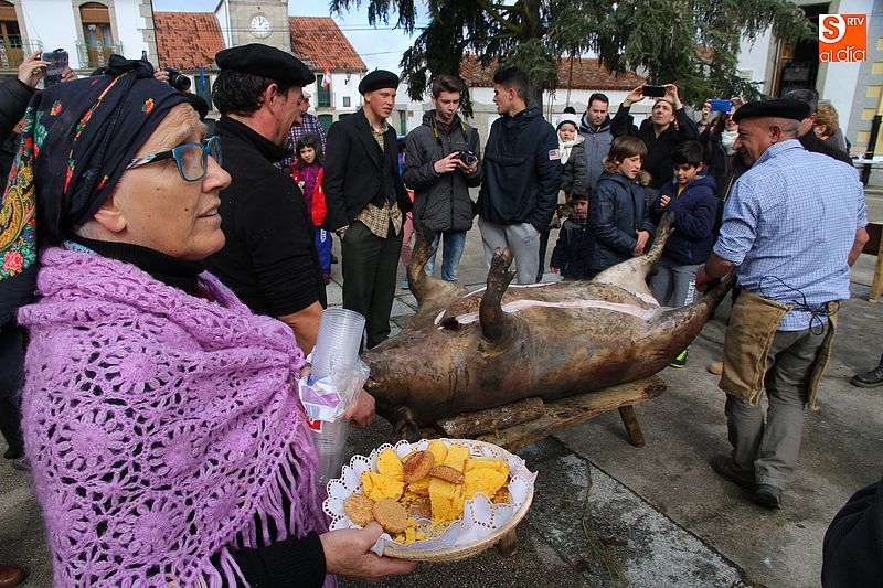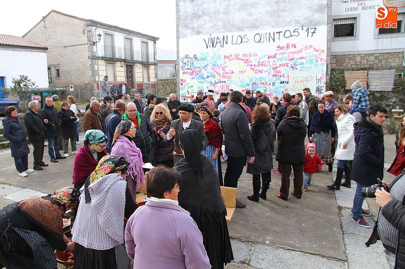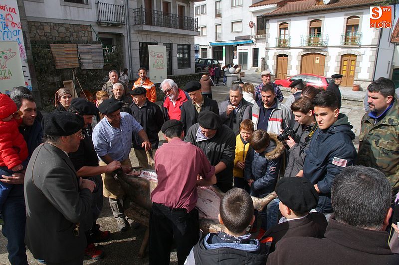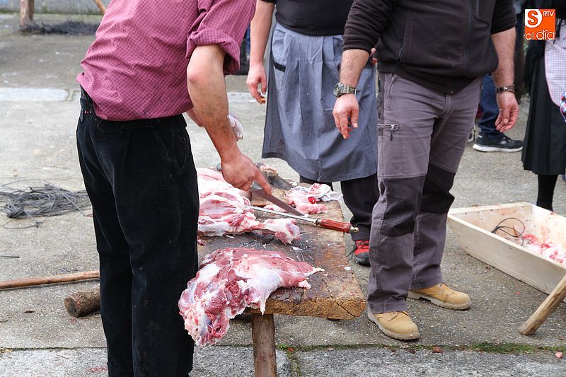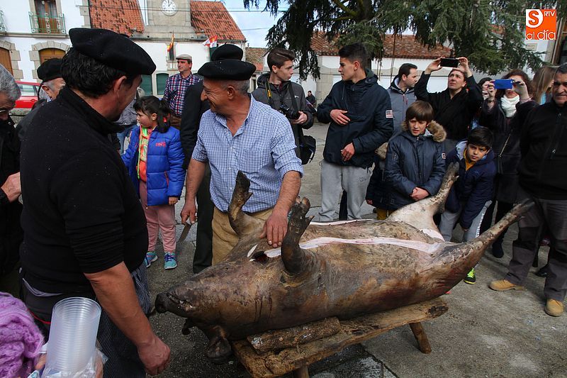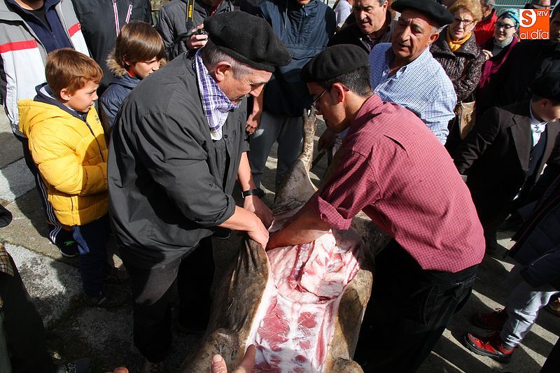 Los Santos vivió el pasado sábado una gran jornada con su Matanza Tradicional, incluida en el circuito de matanzas de la Diputación de Salamanca. Los actos comenzaron por la mañana con la tradicional puja del peso del cerdo en arrobas, en la que participaron decenas de personas a lo largo de la mañana. La primera degustación fue de aguardiente con dulces típicos, como es costumbre en las jornadas matanceras. A continuación, se chamuscó el cerdo y se procedió al despiece. Tal y como ha ocurrido en la mayor parte de las matanzas de la provincia, el cerdo llegó ya sacrificado a la plaza, por lo que se procedió directamente a las tareas de destazado. Los miembros de la Asociación Corral de Concejo, organizadora de la actividad, mostraron a los presentes el proceso de elaboración de morcilla. Al tiempo que se ofrecían nuevas degustaciones, como la de sopas de ajo. Con el cerdo ya despiezado, y con una gran temperatura en la plaza Mayor, se dio paso a la comida, con un menú de patatas revueltas con torreznos y carne asada. Por la tarde, los juegos infantiles y taller matanceros ocuparan a los presentes hasta la cena, antes del baile que cerrará la jornada. Por la tarde hubo tiempo para que se llevara a cabo un homenaje por el reciente fallecimiento de Javier Aparicio, vecino de la localidad que perdió la vida en un accidente de tráfico. Más de un centenar de personas se congregaron para guardar un minuto de silencio. A continuación, la charanga de la matanza interpretó 'Amparito Roca', el pasodoble preferido de Javier, trompetista aficionado que había llegado a formar parte de la Banda Municipal de Música de Béjar.
