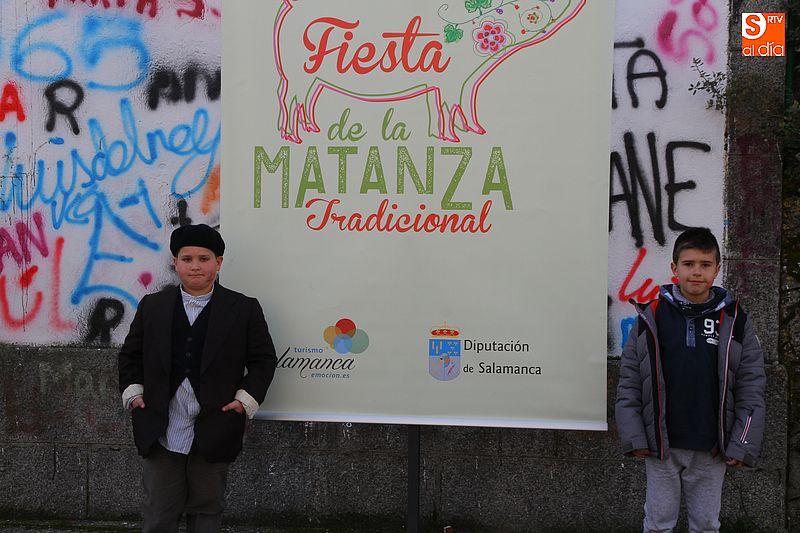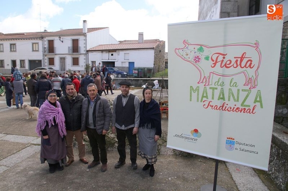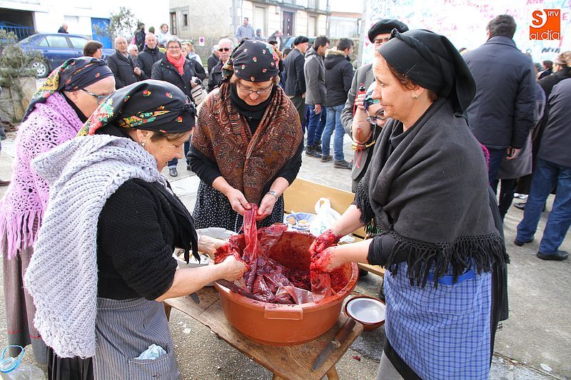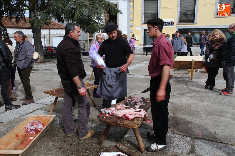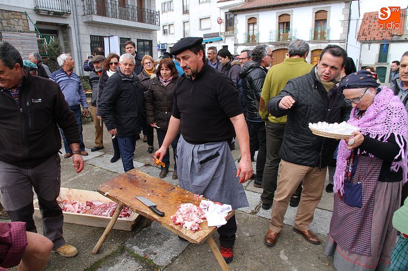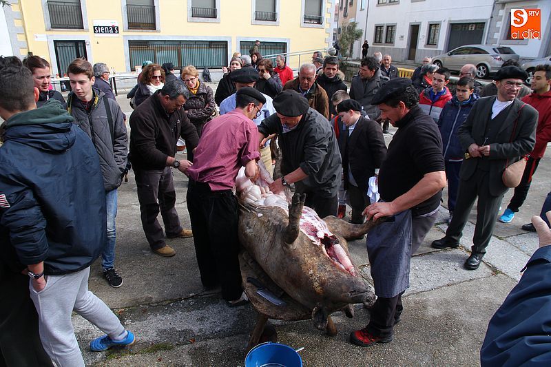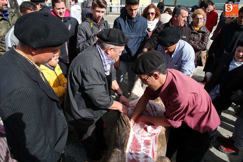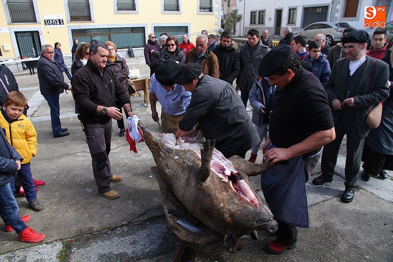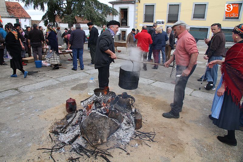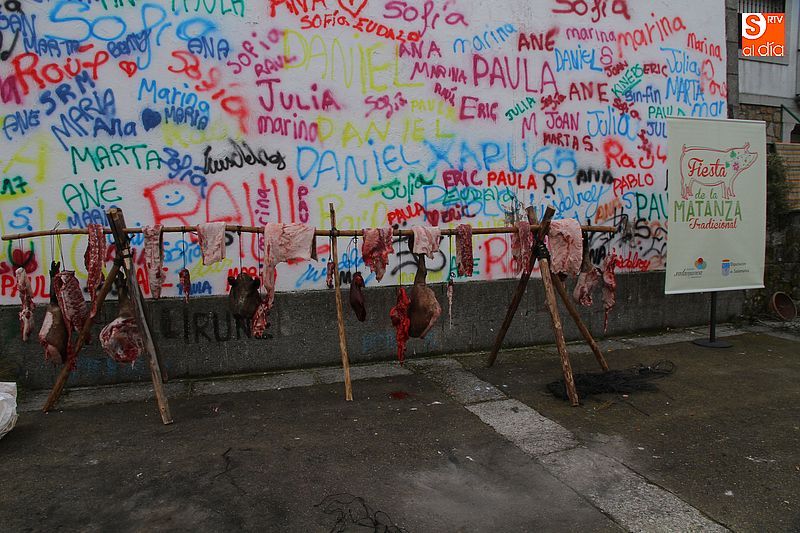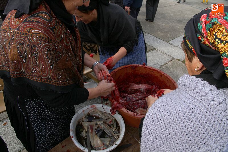 Los Santos vivió el pasado sábado una gran jornada con su Matanza Tradicional, incluida en el circuito de matanzas de la Diputación de Salamanca. Los actos comenzaron por la mañana con la tradicional puja del peso del cerdo en arrobas, en la que participaron decenas de personas a lo largo de la mañana. La primera degustación fue de aguardiente con dulces típicos, como es costumbre en las jornadas matanceras. A continuación, se chamuscó el cerdo y se procedió al despiece. Tal y como ha ocurrido en la mayor parte de las matanzas de la provincia, el cerdo llegó ya sacrificado a la plaza, por lo que se procedió directamente a las tareas de destazado. Los miembros de la Asociación Corral de Concejo, organizadora de la actividad, mostraron a los presentes el proceso de elaboración de morcilla. Al tiempo que se ofrecían nuevas degustaciones, como la de sopas de ajo. Con el cerdo ya despiezado, y con una gran temperatura en la plaza Mayor, se dio paso a la comida, con un menú de patatas revueltas con torreznos y carne asada. Por la tarde, los juegos infantiles y taller matanceros ocuparan a los presentes hasta la cena, antes del baile que cerrará la jornada. Por la tarde hubo tiempo para que se llevara a cabo un homenaje por el reciente fallecimiento de Javier Aparicio, vecino de la localidad que perdió la vida en un accidente de tráfico. Más de un centenar de personas se congregaron para guardar un minuto de silencio. A continuación, la charanga de la matanza interpretó 'Amparito Roca', el pasodoble preferido de Javier, trompetista aficionado que había llegado a formar parte de la Banda Municipal de Música de Béjar.