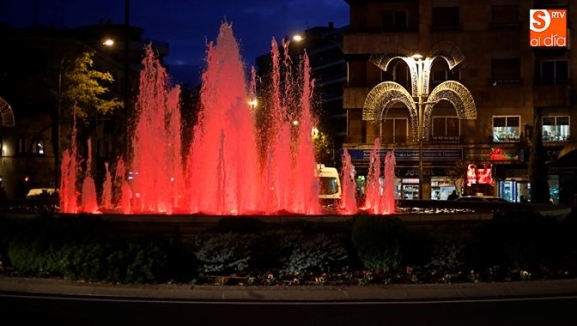 La fuente de la Puerta Zamora se ilumina mañana jueves de verde y naranja, los colores de la Asociación Para la Lucha Contra las Enfermedades de Riñón (ALCER), con motivo de la conmemoración del Día Mundial del Riñón.
