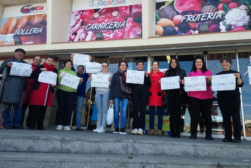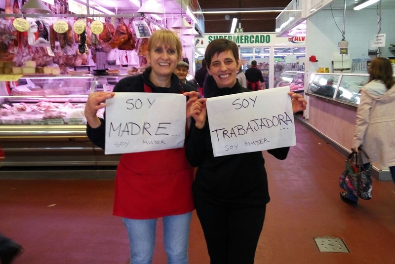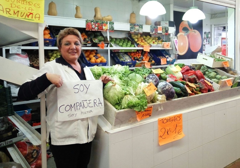 En esa concentración, en la que tomaron parte hombres y mujeres, los participantes lucieron una serie de carteles que se pudieron ver durante toda la mañana por el Mercado, en los que se reivindica la "lucha diaria" de las mujeres como "empresarias, compañeras, amigas, conductoras, vecinas, madres, hijas, tías, sobrinas, nueras, etc.".