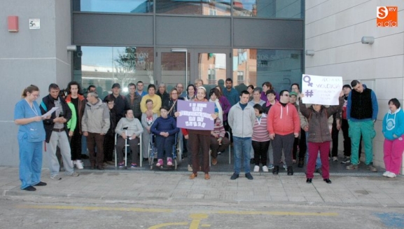 Usuarios y empleados del centro integral de Asprodes, en Vitigudino, celebraron este 8 de marzo el Día Internacional de la Mujer. Durante el acto, a las puertas del centro, se dio lectura de un manifiesto en defensa de la igualdad de la mujer y contra la violencia de género. También se guardó un minuto de silencio por las mujeres víctimas de la violencia machista.