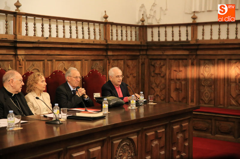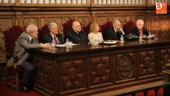El acto ha estado presidido por la rectora, Mirian de las Mercedes Cortés Diéguez, acompañada por el autor del libro, el cardenal Sebastián Aguilar, junto con el presidente del CES, Jesús Málaga Guerrero; el periodista y miembro del CES, Ignacio Francia Sánchez; el catedrático de Historia Contemporánea de la Universidad de Alcalá de Henares, Feliciano Montero García y el catedrático de Teología de la UPSA, Olegario González de Cardedal.