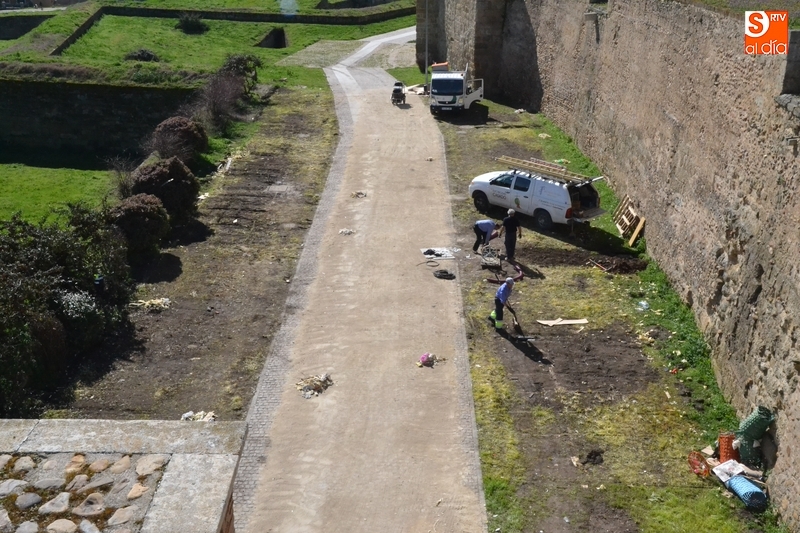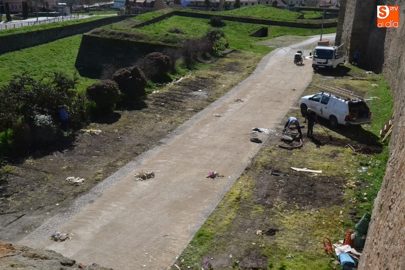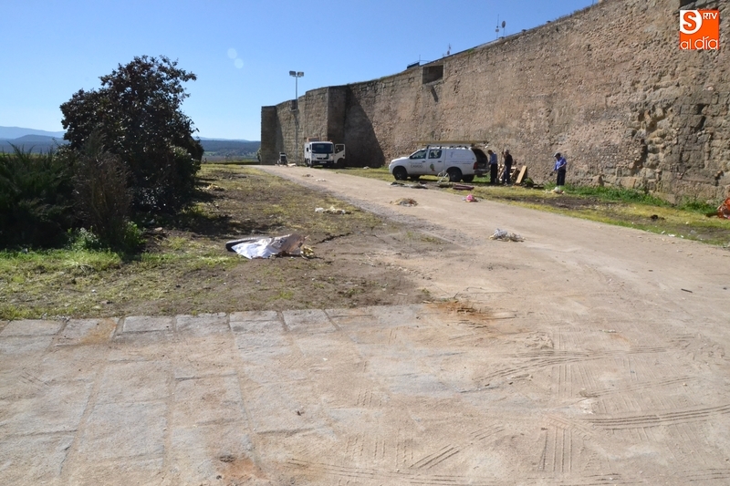 El Paseo Fernando Arrabal de Ciudad Rodrigo, en su tramo comprendido entre la bóveda de la Puerta del Sol y el Cuerpo de Guardia de San Pelayo, está en pleno proceso de vuelta a la normalidad tras la retirada de las casetas para peñas allí colocadas con motivo del Carnaval.