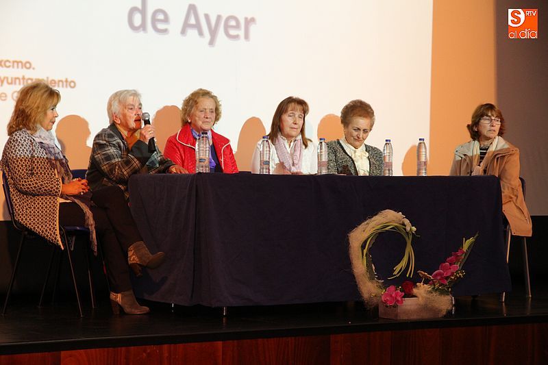 medio centenar de personas acudieron a la actividad que dio comienzo en torno a las seis de la tarde, con la presencia de las miembros de AMEG al completo y las concejalas Yolanda Alonso, Mayte Montero y Chus Moro, de las áreas de Familia, Mujer y Cultura. Comenzó contando sus experiencias Toñi Díaz, en representación de su abuela, que durante décadas se dedicó a la hostelería. A continuación, Manuela Sánchez Mesonero, compartió sus recuerdos tras trabajar en la envasadora de aceite de la familia Rodilla a mediados de los años 60. "Empecé muy joven embotellando aceite, que Cuando no teníamos que trabajar con el aceite, trabajaba en el supermercado, cuando era todo a granel, y teníamos que vender azucar, sal, legumbres, galletas y todo tipo de artículos al peso y teníamos que atender a cada cliente de manera personalizada". Por su parte, María Tirado compartió su experiencia como cocinera en el Instituto Vía de la Plata, que en sus inicios era un internado, que comenzó con 9 alumnos, y con el tiempo, y diversos cambios, terminó siendo un centro de 162 alumnos. "Empecé a trabajar con 41 años en la cocina, y recuerdo que hacíamos todo tipo de comidas, y las que le gustaban a los alumnos no le gustan nada a los profesores. Tras dejar la cocina, estuve trabajando para el Ayuntamiento en otros puestos, como ordenanza de otros centros públicos como el colegio, la escuela de música, las piscinas o el consultorio médico de don José en Campillo de Salvatierra". María del Carmen Fraile Martín comenzó como muchas mujeres de la villa en la industria cárnica, trabajando en Brisa. Años después, la biblioteca municipal de Guijuelo cerró tras la defunción de don Ricardo, antes de que se hiciera cargo Carmen: "Me gusta mucho leer, así que me hice cargo yo, y estuve 21 años encargada de la biblioteca, hasta que se hicieron oposiciones". Finalmente, Flori Sánchez, compartió su experiencia como ganadera. Su familia ha vivido del ganado vacuno desde siempre, por lo que ella vivió la experiencia desde niña y hoy acumula 20 años de experiencia como ganadera de vacas lecheras en la villa. Una profesión bastante olvidada y que antes era muy común.