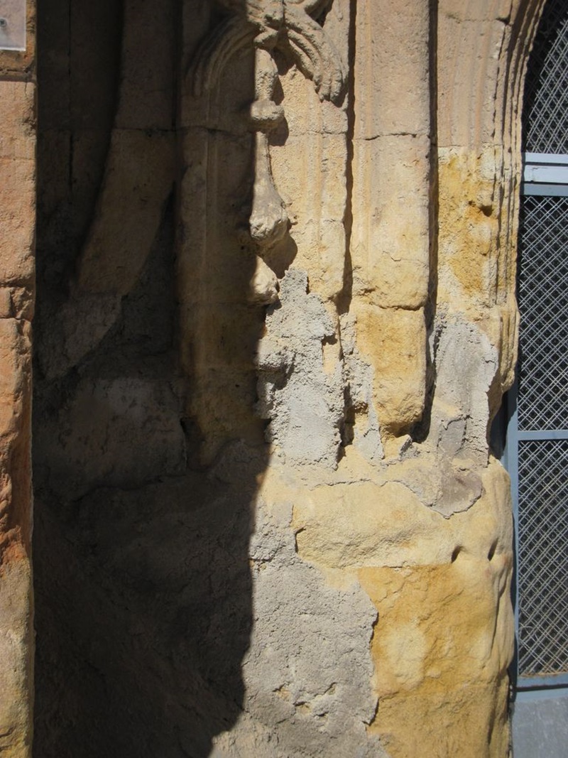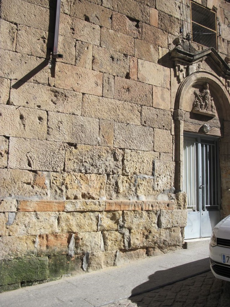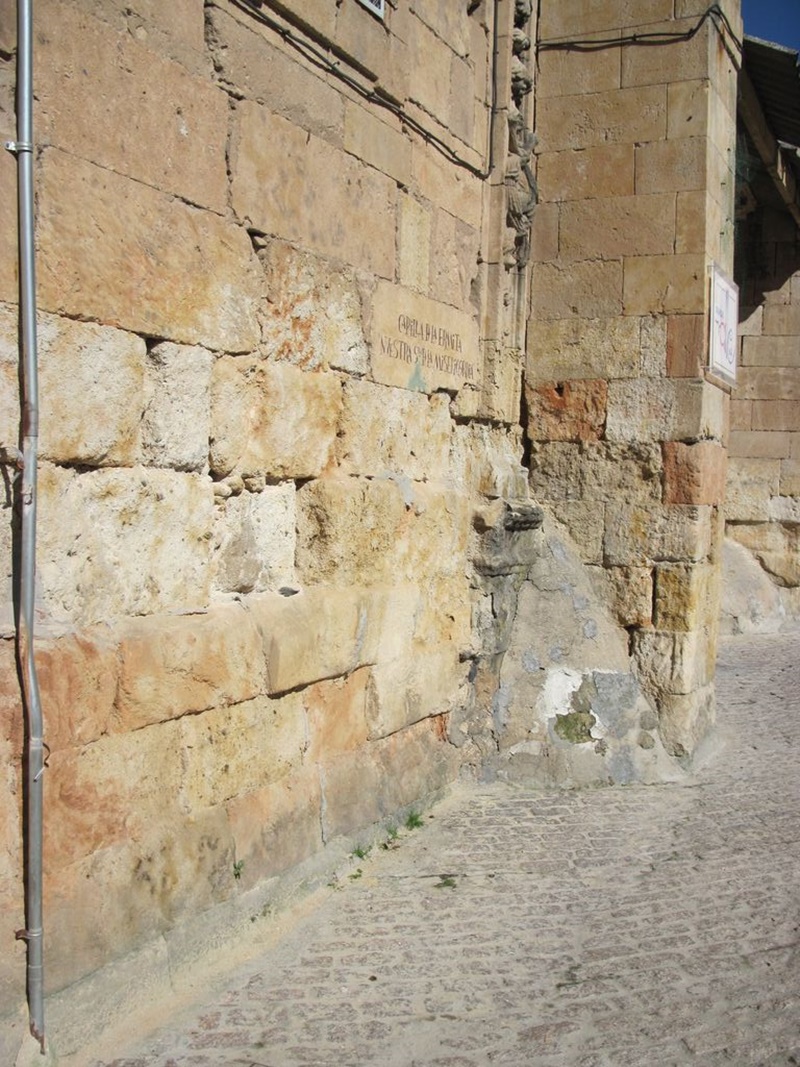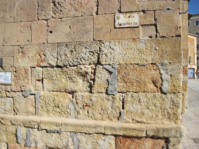 En anteriores escritos presentados por esta Asociación "ya se denunció que la urbanización del entorno, con granito y cemento, impide que la humedad del subsuelo tenga otras salidas diferentes a los sillares de piedra arenisca; además de haber sido mal resueltos los desniveles para facilitar la evacuación del agua. Todo ello contribuye a que este edificio, situado en la cota inferior de una plaza, conviva con la humedad y se deteriore gravemente la fábrica original".