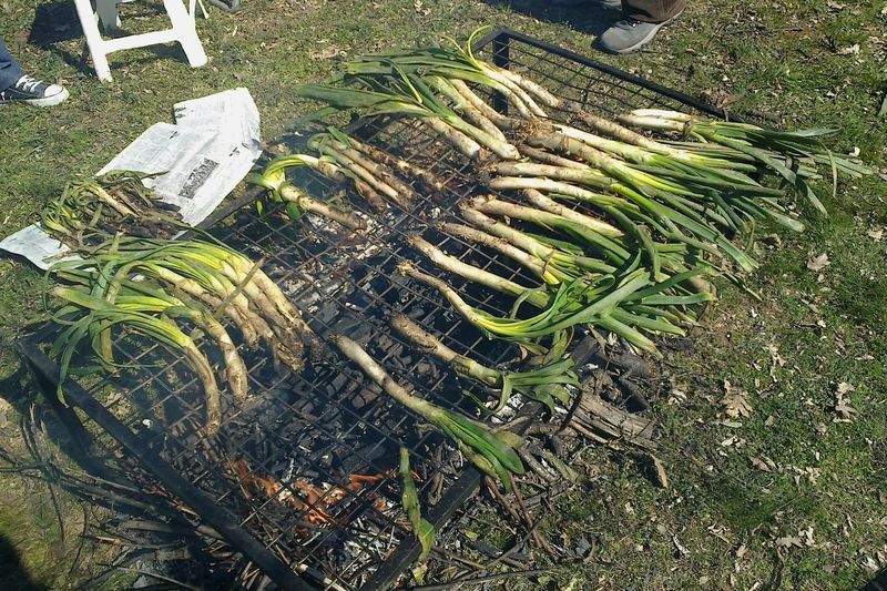 La jornada comienza de mañana con la preparación del fuego para que se formen unas buenas brasas sobre las que colocar esta sabrosa verdura, que toma un color negro carbonizado en su primera capa, pero luego se convierte en blanco prístino cuando comienza el ritual de tirar de ella, de pie y con babero, por la deliciosa salsa romesco en la que se sumerge el calçot, que acabaría sin remedio sobre la ropa si se comiera sentado.