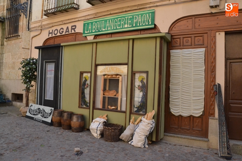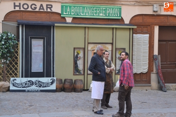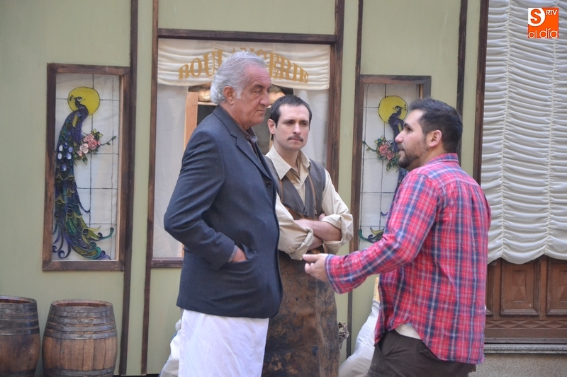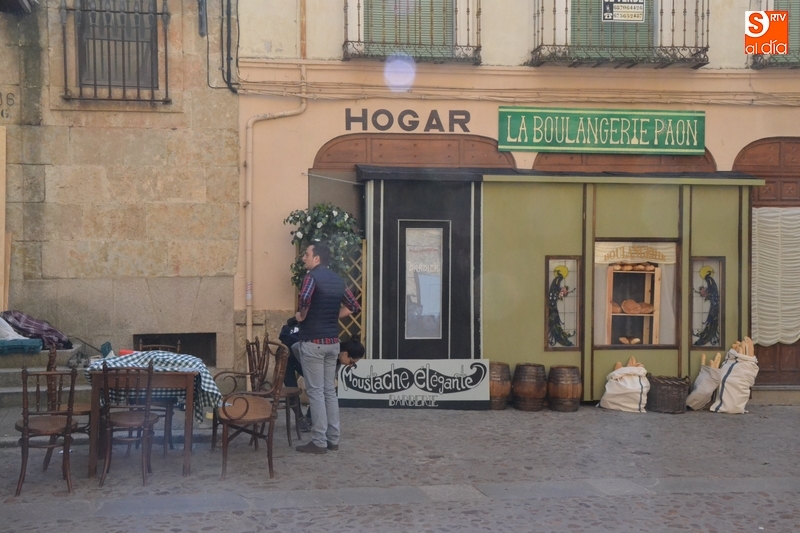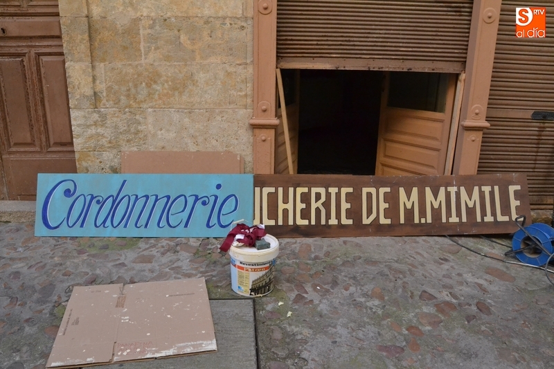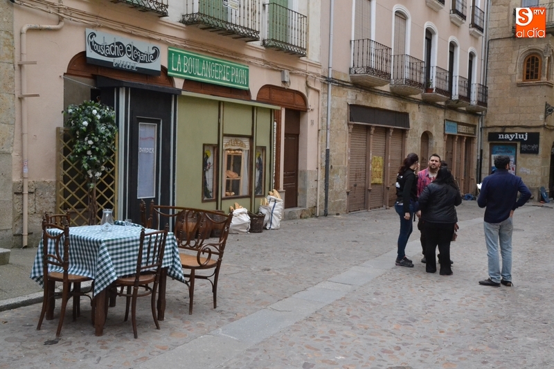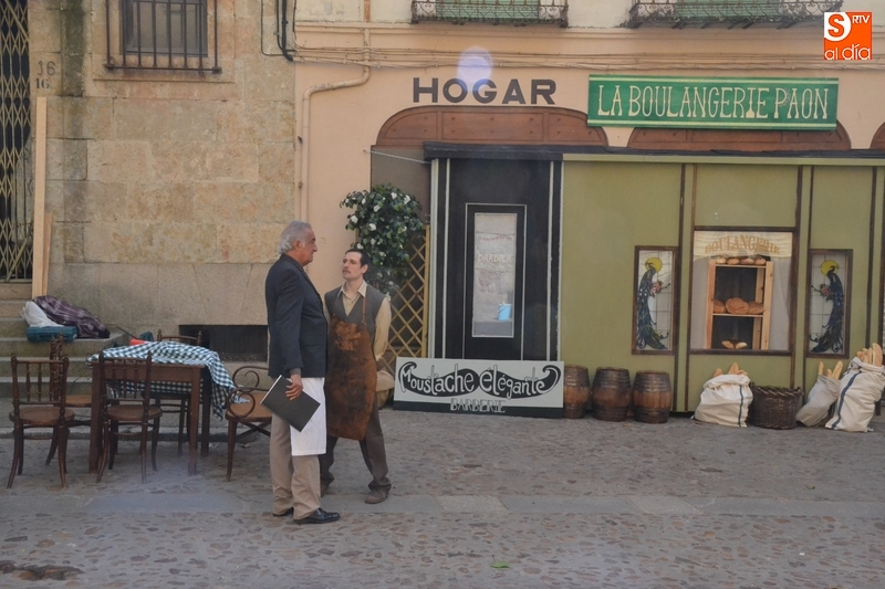 Ese doble viaje corrió a cargo del equipo de ambientación de la película, que colocó diversos elementos en la parte central de la calle, abriendo asimismo las puertas del antiguo 'Almacén de Drogas' (transformado en carnicería) y del Cine Madrid. En las escenas de la mañana del domingo participaron los actores Marian Arahuetes, Bárbara Rodríguez, Juan Lombardero y el mirobrigense Daniel Gómez.