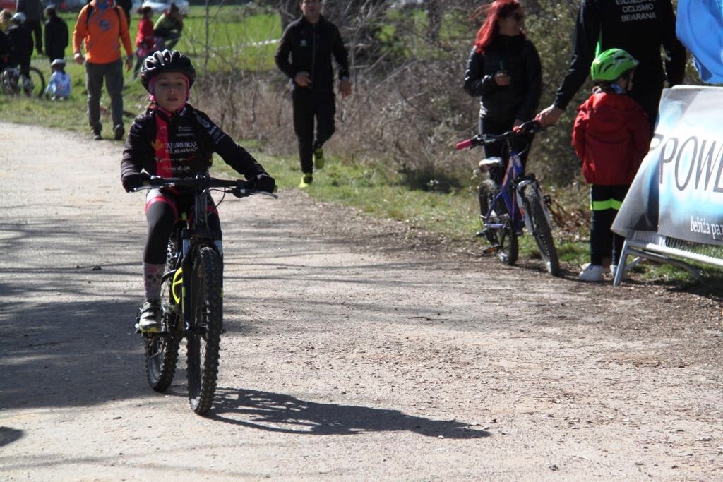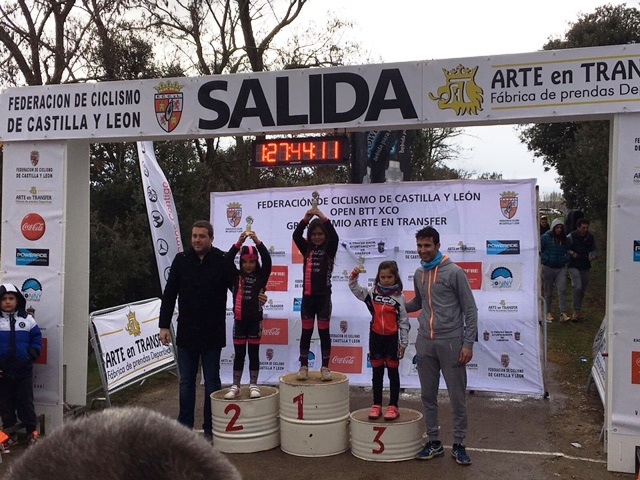 En esta misma categoría Adrián López fue tercero después de remontar en los metros finales. Roberto Alonso en categoría infantil terminó en un meritorio tercer puesto y sigue en el podium de Campeonato de Castilla y León de BTT. La mañana fue de mucho aire, frío y un circuito duro y exigente.