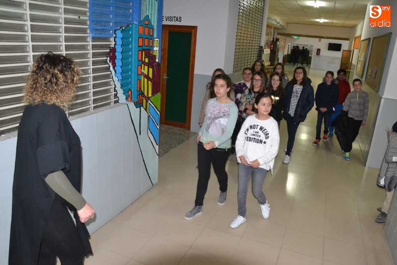 Por su parte, el IES Tierra de Ciudad Rodrigo contó en la mañana del lunes con la visita de los alumnos de 6º del Colegio Miróbriga, que en este caso acudieron todos a la vez al IES. Tras una charla inicial, los alumnos se dividieron en cuatro subgrupos para recorrer el centro acompañados de responsables del mismo y alumnos de 1º de la ESO que les hicieron de guías.