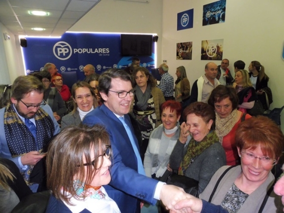 El precandidato a la presidencia del PP de Castilla y León ha mantenido un encuentro con afiliados en Soria