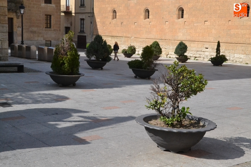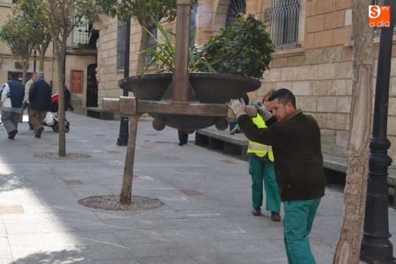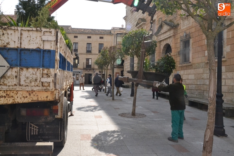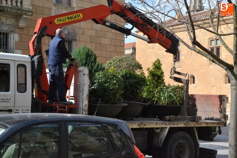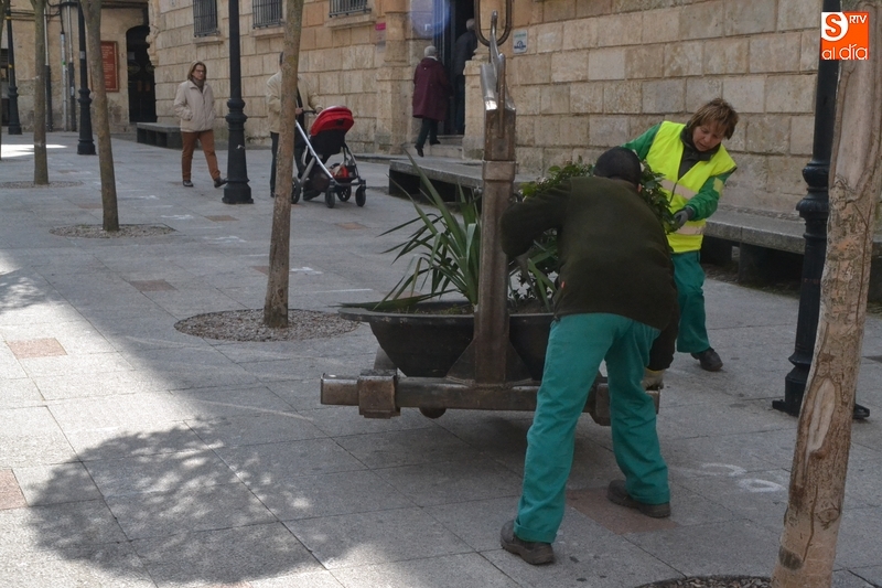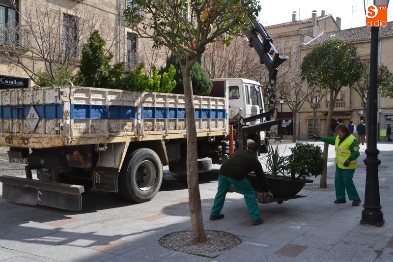 Ocupada durante los días de Carnaval por una serie de puestos ambulantes, en la mañana del martes fueron recolocadas las clásicas jardineras que hay durante el resto del año en este espacio. Para volverlas a poner se empleó un camión-grúa.