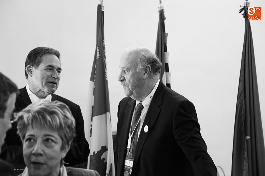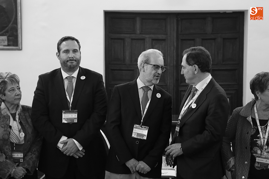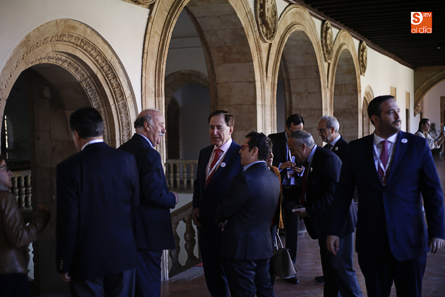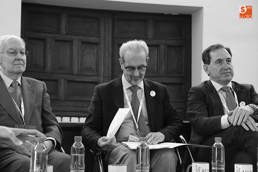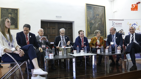Moderados por los periodistas e integrantes de la junta directiva José Luis Fuentecilla, subdirector de Informativos de Mediaset España, y Sergio Martín Herrera, director de "Los desayunos de TVE", los participantes en este debate han tratado el estado actual de la Universidad y la necesidad de adaptarse a una sociedad tecnológica, en constante y frenético cambio. Esta iniciativa se celebra en el marco de la primera reunión del consejo asesor de Alumni Universidad de Salamanca, que tiene lugar en el Colegio Arzobispo Fonseca.