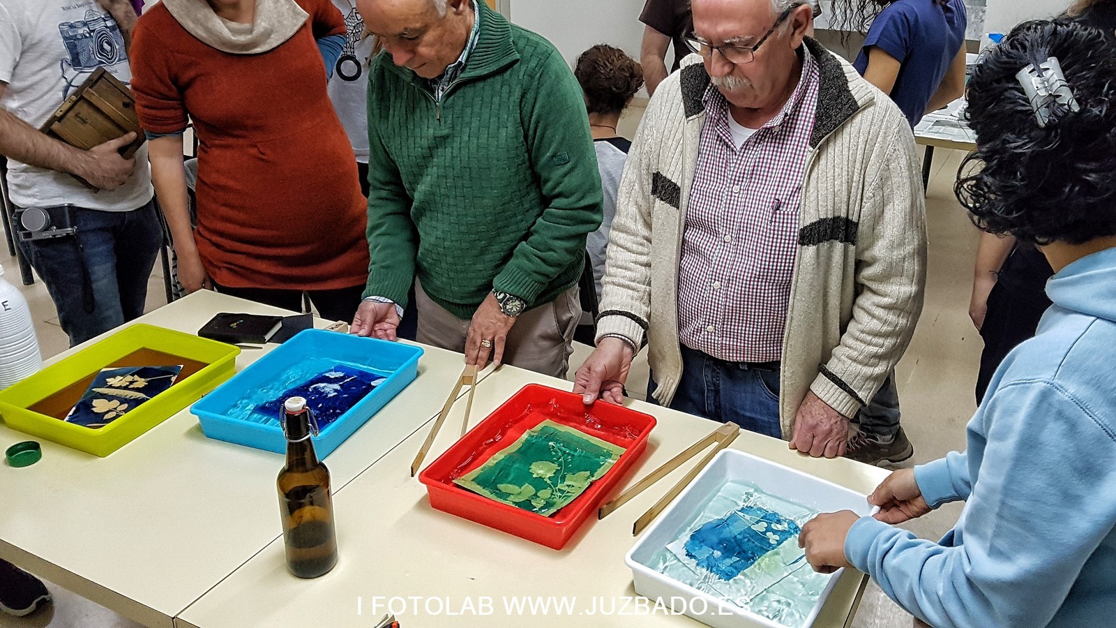 La delicadeza y complejidad del taller debido a la oscuridad bajo la cuál se debe realizar parte del proceso, obliga a contar con un máximo de 10 personas. El éxito en la convocatoria hizo que fueran más las personas solicitantes y, por lo tanto, que se realizara una ampliación excepcional de participantes hasta 12. Fueron personas de todas las edades, muchos de ellos vecinos de Juzbado pero también otras venidas de otros pueblos de alrededor y de Salamanca.