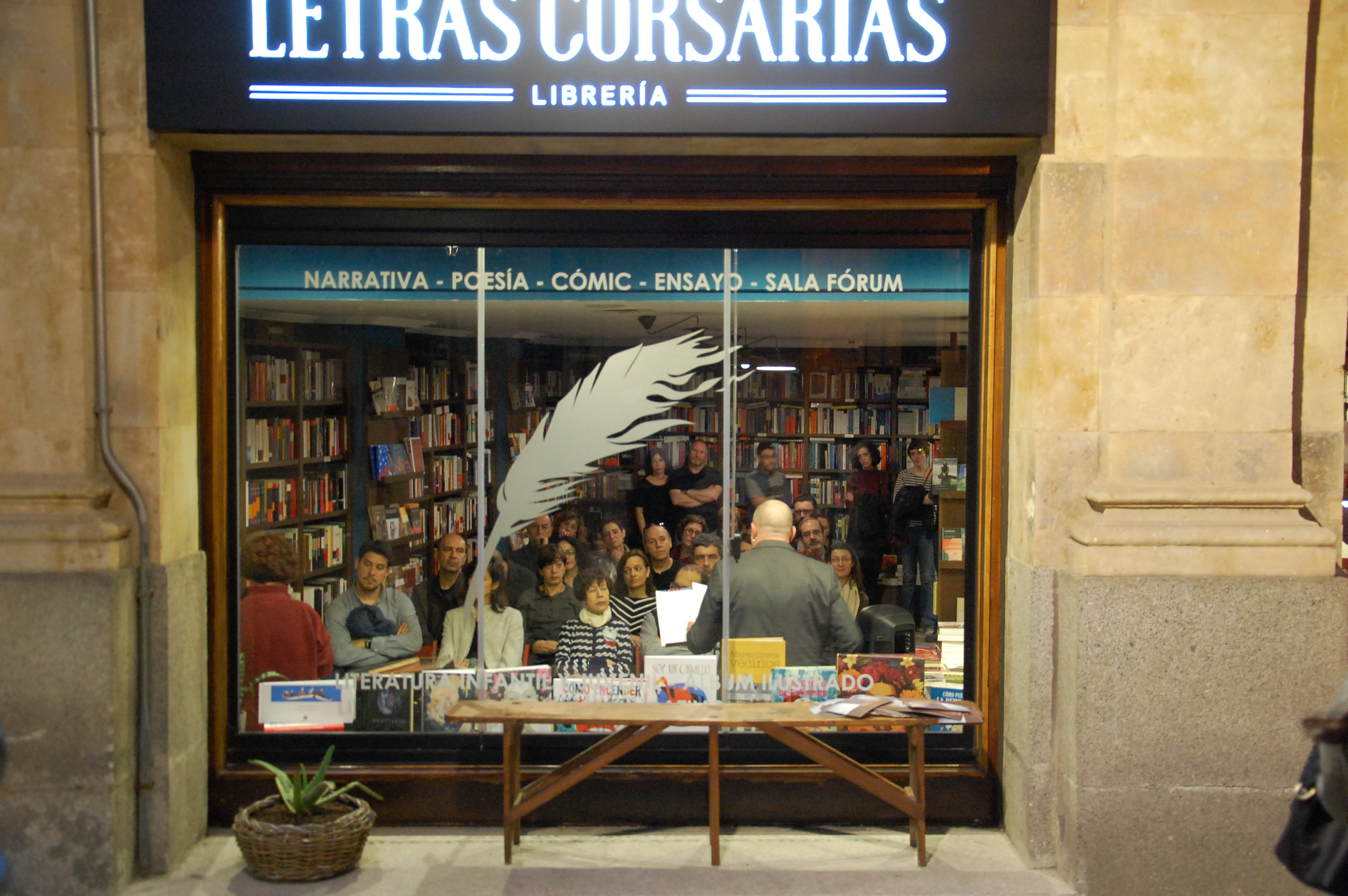 Con este espectáculo diferente, la nave corsaria celebra dos años de libros, encuentros, presentaciones, recitales, teatro y música en lo que ya se ha convertido en un espacio de referencia en la Salamanca que lee, la Salamanca que necesita y tiene librerías, la Salamanca al encuentro de todo tipo de manifestaciones literarias y artísticas donde unos pocos corsarios reconocen como su casa esta nave que, a toda vela y acompañada de sus hermanas en la pólvora ?la librería Improvisados, en Segovia y la Puerta de Tanhäuser en Plasencia- ha conseguido un Premio Nacional de Fomento de la Lectura y, sobre todo, se ha consolidado como lugar de encuentro. Rafael Arias, Miguel, Antonio y Mercedes no solo son una referencia en una ciudad de páginas, sino un referente de cercanía siempre prestos a potenciar las propuestas más novedosas e incluso las más minoritarias. Por ello solo queda felicitarnos y disfrutar, en medio de este silencio roto por la espléndida voz de Víctor M. Díaz, de un regalo envenenado, porque la novela negra siempre nos abre un hueco en lo más hondo, revelando inconfesables secretos, incluso, en una tarde tan aparentemente armónica y provinciana. Felicidades, corsarios. Felicidades, tripulación entregada.