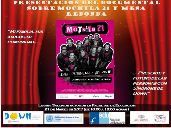 Se visionará el documental '¡Motxila 21, en vivo!' y a continuación tendrá lugar una mesa redonda donde se contarán experiencias con personas con síndrome de Down en el ámbito educativo, laboral y social.
