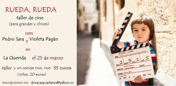El taller de cine 'Rueda, rueda' vuelve este sábado, 25 de marzo, a La Querida. Abierto a la participación de pequeños y mayores, será impartido por el cineasta Pedro Sara y la psicodramatista Violeta Pagán, que enseñarán a los interesados a contar historias con imágenes en movimiento, a crear ssu propio guión y a filmar una pieza audiovisual.