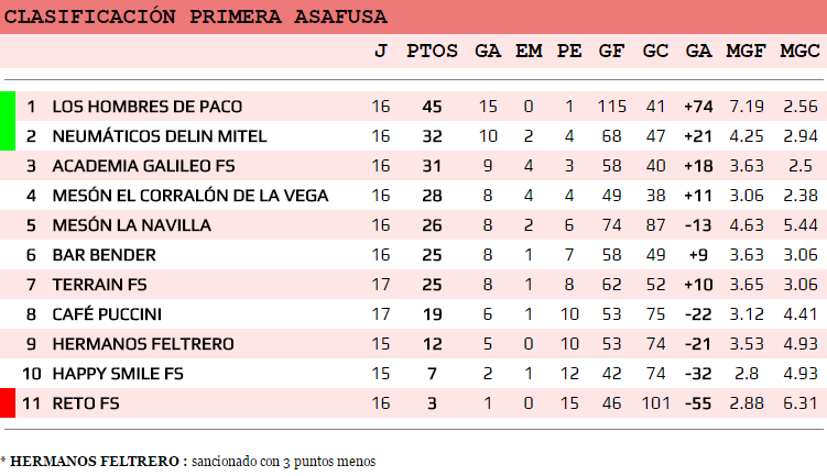 Fin de semana excepcional para LOS HOMBRES DE PACO que con su victoria por 1-3 contra MESÓN EL CORRALÓN DE