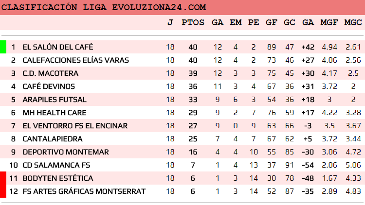 La próxima jornada, enfrentamiento directo entre los dos primeros, El Salón del Café contra Calefacciones Elías Varas, una de las muchas finales que aún quedan en esta Liga Evoluziona24.com.