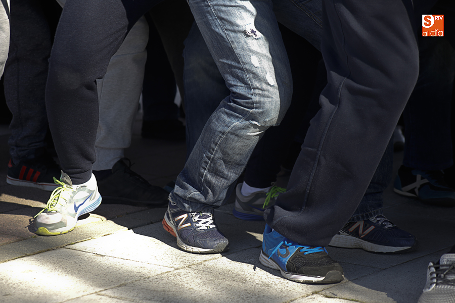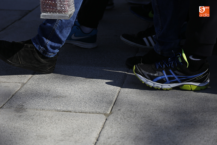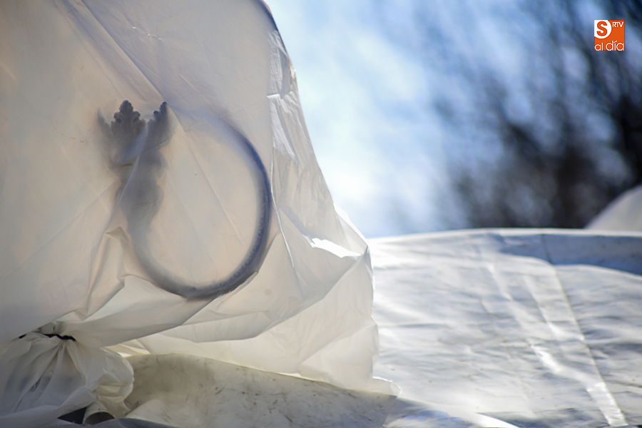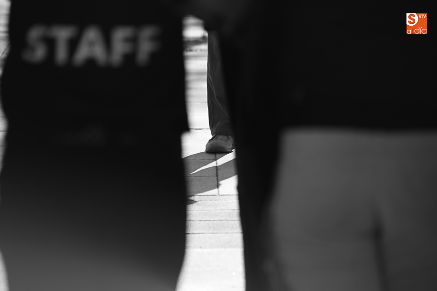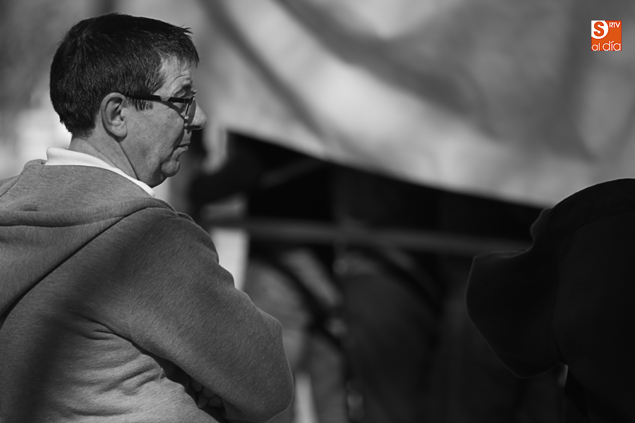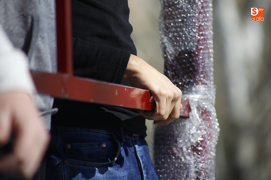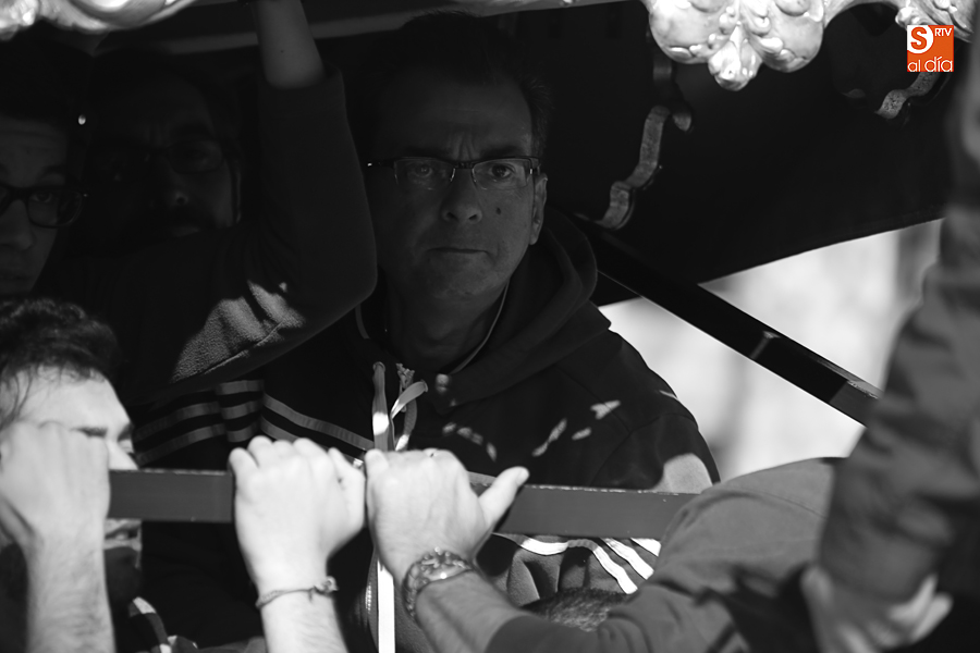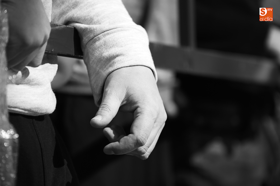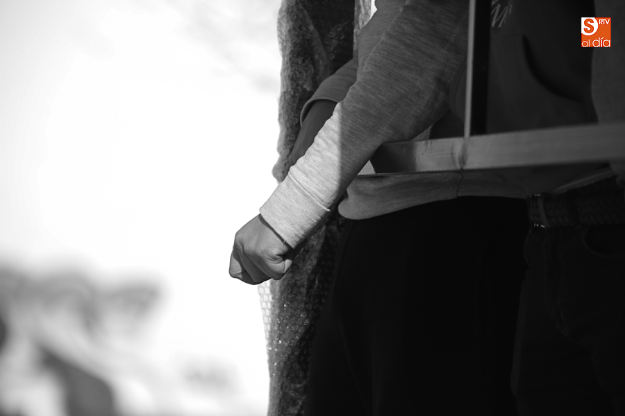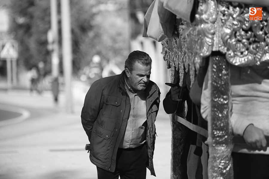 Despuntan los primeros rayos del sol de una casi primaveral mañana de domingo a orillas del Tormes y, como cada cuaresma, las puertas de la iglesia del Arrabal se abren para dar paso al esfuerzo, trabajo y pasión de los que van caminando precisamente hacia eso, la Pasión. Un ejemplo es el paso de Nuestra Señora de La Piedad, que ensaya ante la mirada de curiosos, con las Catedrales como fondo y testigo, el característico andar de la Madrugada salmantina.