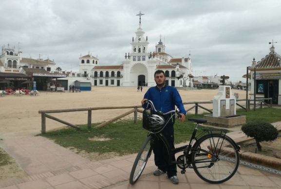 El joven Nacho Rodríguez une en bici Ciudad Rodrigo y El Rocío para cumplir una promesa