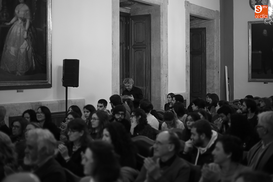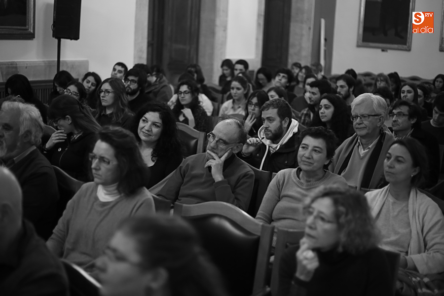 El encuentro ha sido moderado por Mª Ángeles Pérez López, poeta y directora del Departamento de Literatura Española e Hispanoamericana de la Facultad de Filología de la USAL.