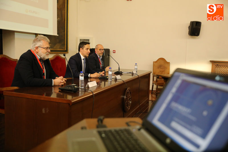 En la inauguración intervenían el vicerrector de Investigación y Transferencia, Juan Manuel Corchado, junto al director del Centro de Láseres Pulsados Ultracortos Ultraintensos (CLPU), Luis Roso Franco; y el director de la Cátedra de Láser Plasma del CLPU en la Universidad de Salamanca, Luca Volpe.