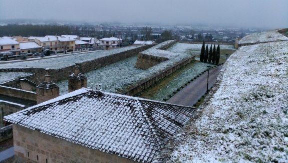 Si hasta la jornada del domingo se pudo disfrutar de un radiante sol y altas temperaturas que invitaban incluso a estar en la calle cómodamente en manga corta, desde entonces las temperaturas no han hecho más que bajar, alcanzando su cénit en Ciudad Rodrigo en la madrugada del miércoles al jueves, cuando cayó una importante nevada en la ciudad, deparando un amanecer blanco.