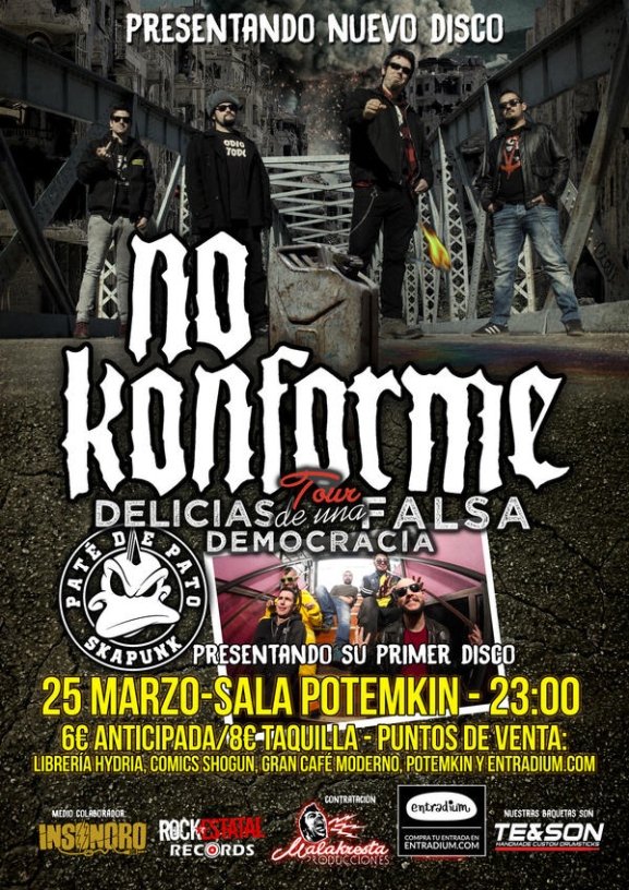 Los madrileños No Konforme presentarán su nuevo disco 'Delicias de una nueva democracia' este sábado, en la sala Potemkin, a las 23.00 horas. El precio de la entrada es de 6 euros.