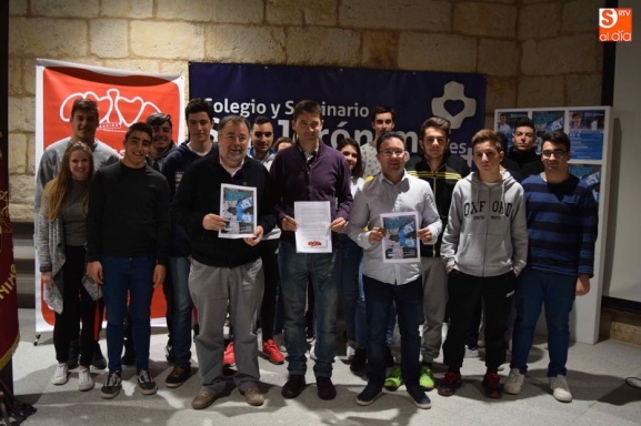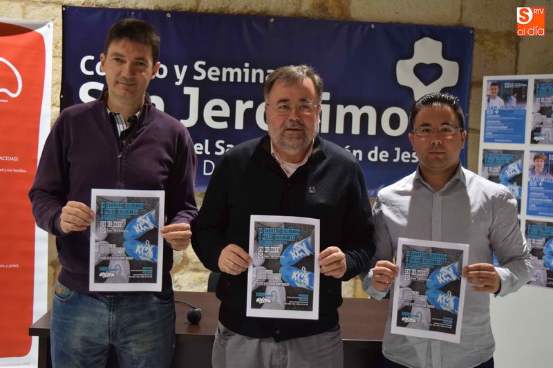El Padre Superior del Colegio y Seminario San Jerónimo, Valentín Pérez, junto al director de la fundación AVIVA Salamanca, Eugenio Sánchez, y el concejal de Deportes del Ayuntamiento de Alba de Tormes, Raúl de Arriba, presentaron esta mañana la IV edición de la carrera y paseo saludable que tendrá lugar en Alba de Tormes y acogerá San Jerónimo el próximo 28 de mayo.
